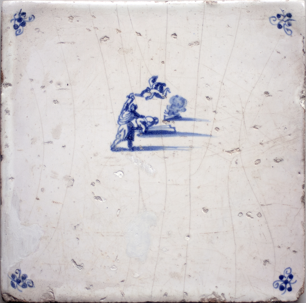 tegel van aardewerk met tinglazuur, voorstellende: P...