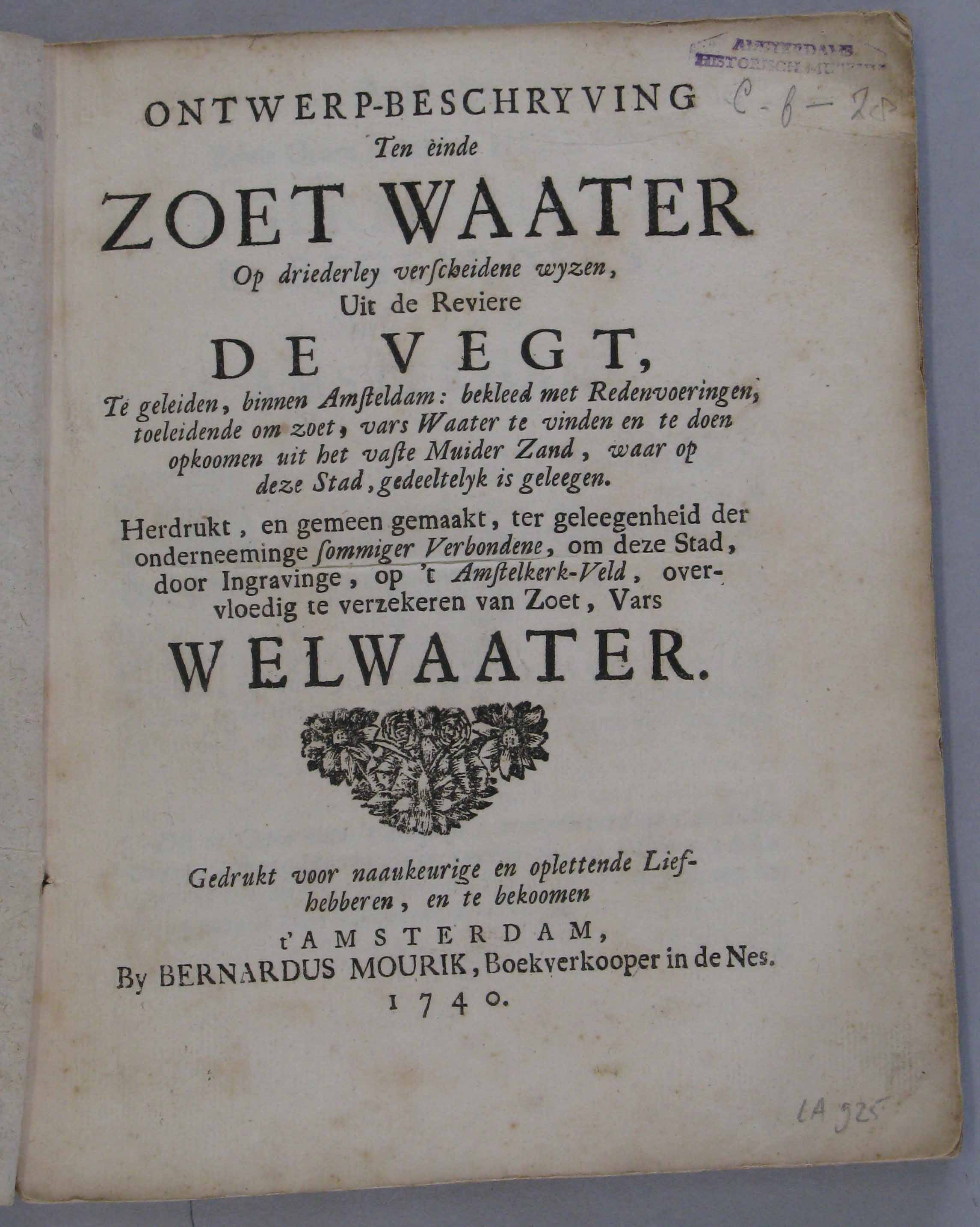 Ontwerp-beschryving ten einde zoet waater op drieder...