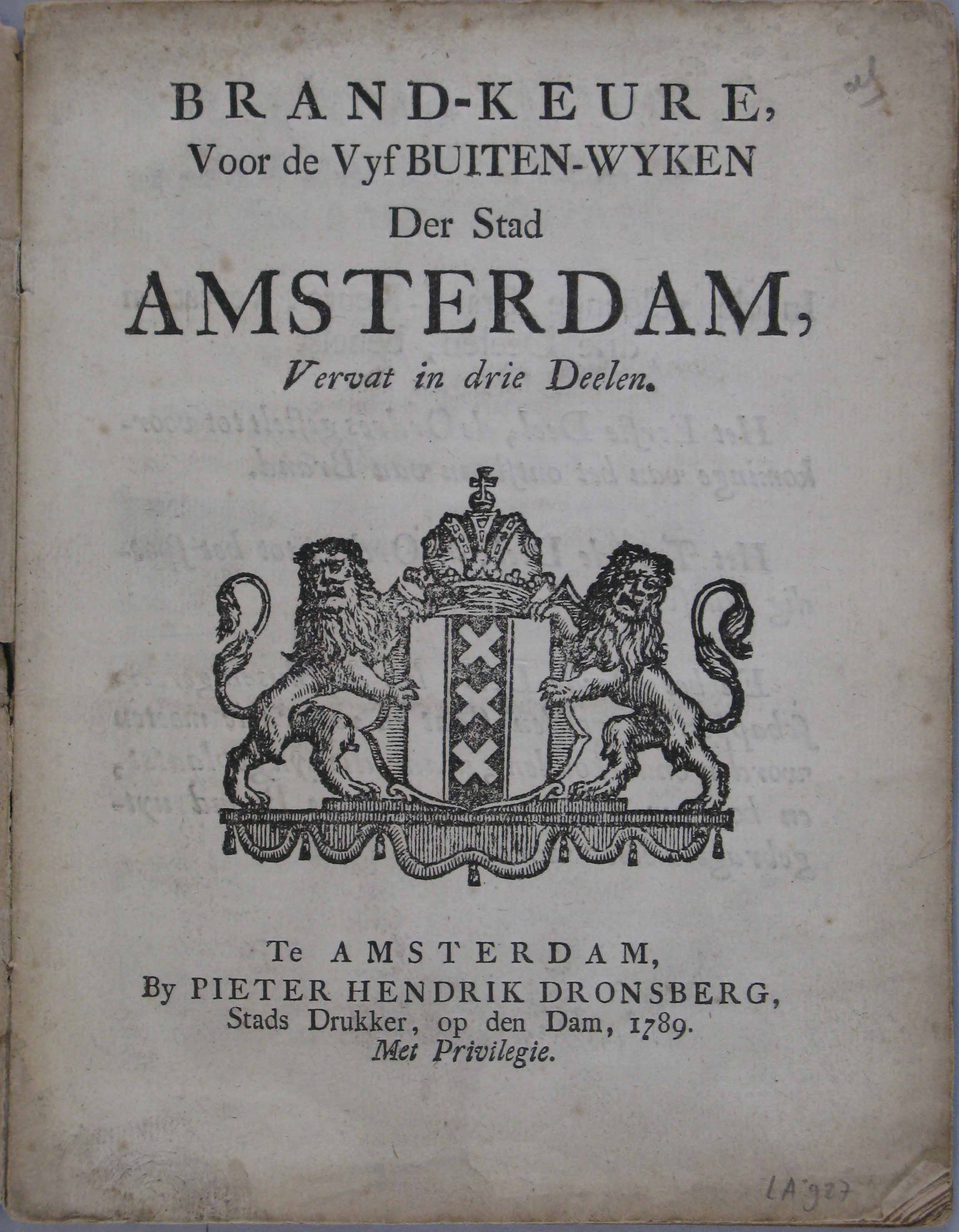 Brand-keure, voor de Vyf Buiten-Wyken der stad Amste...
