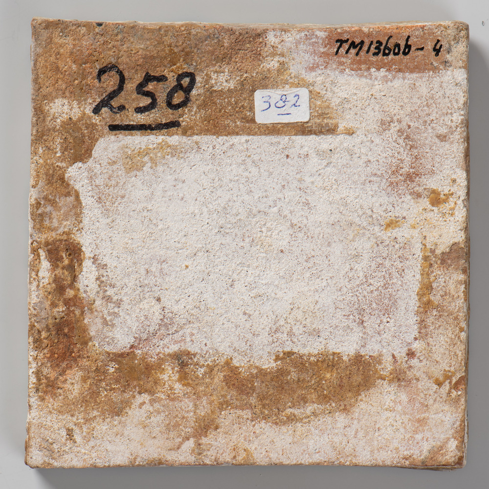 Tegel van keramiek met tinglazuur, voorstellende: or...
