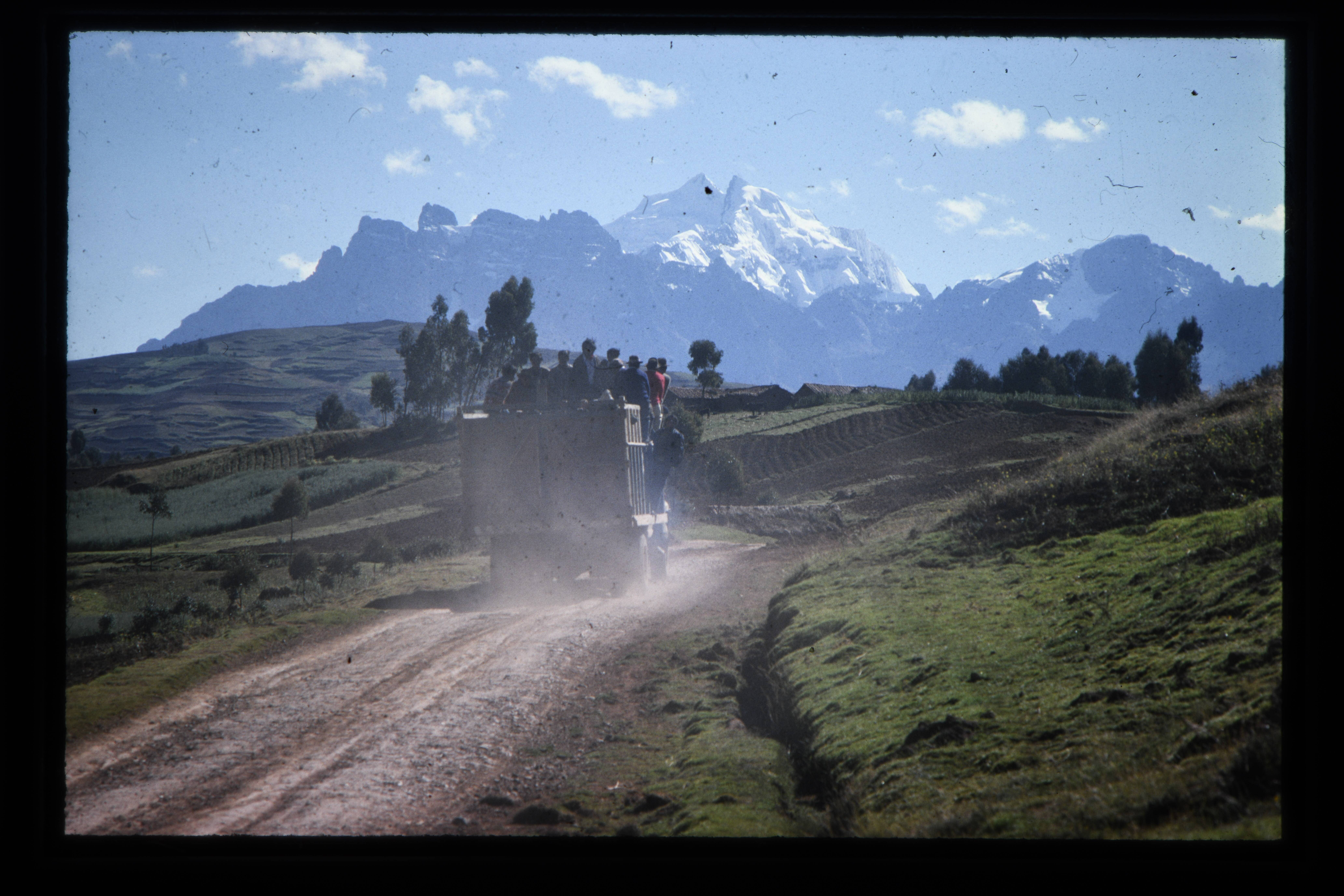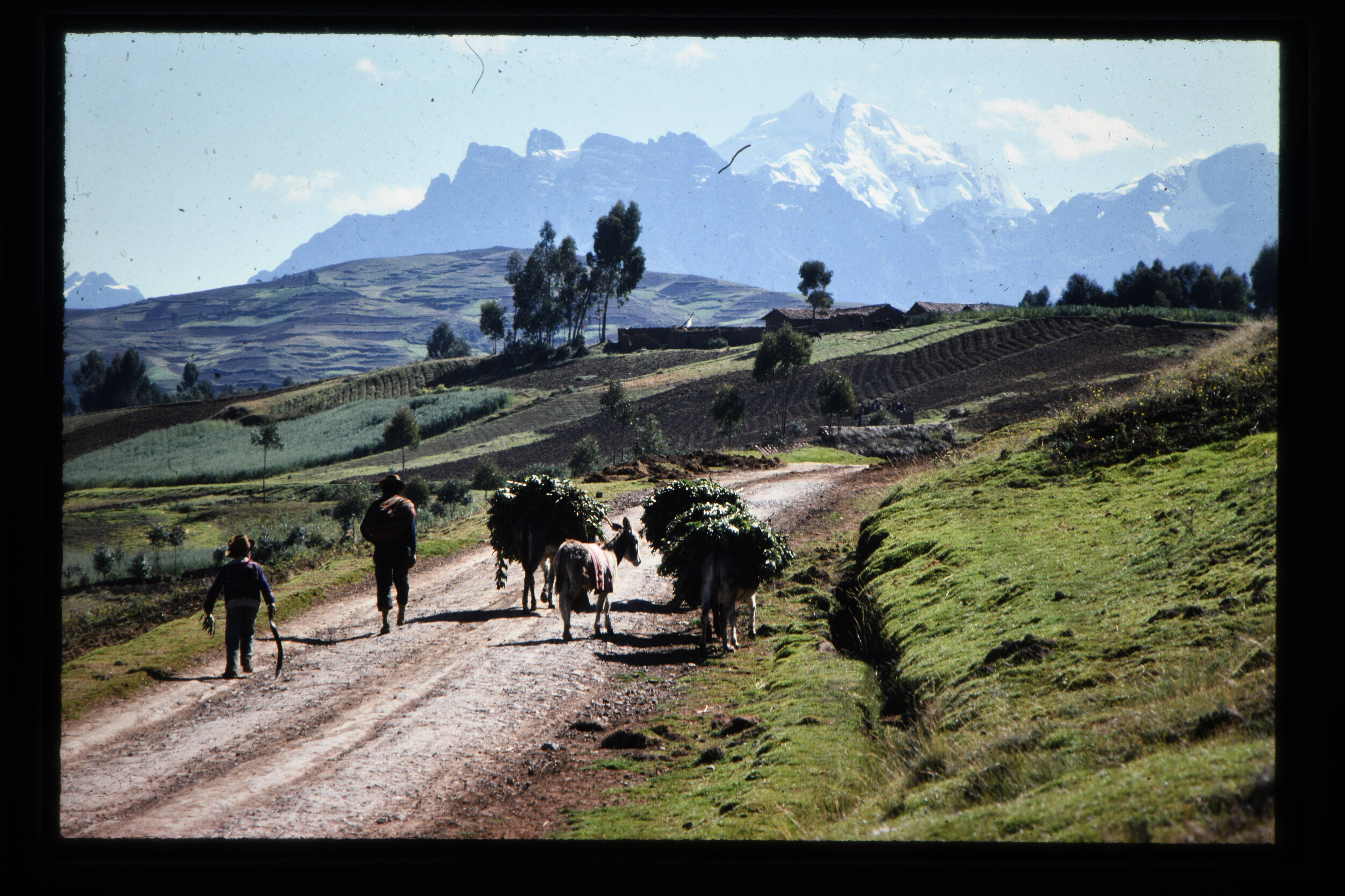 'Vervoer per lastdier op de weg van Cusco naar Puno.'