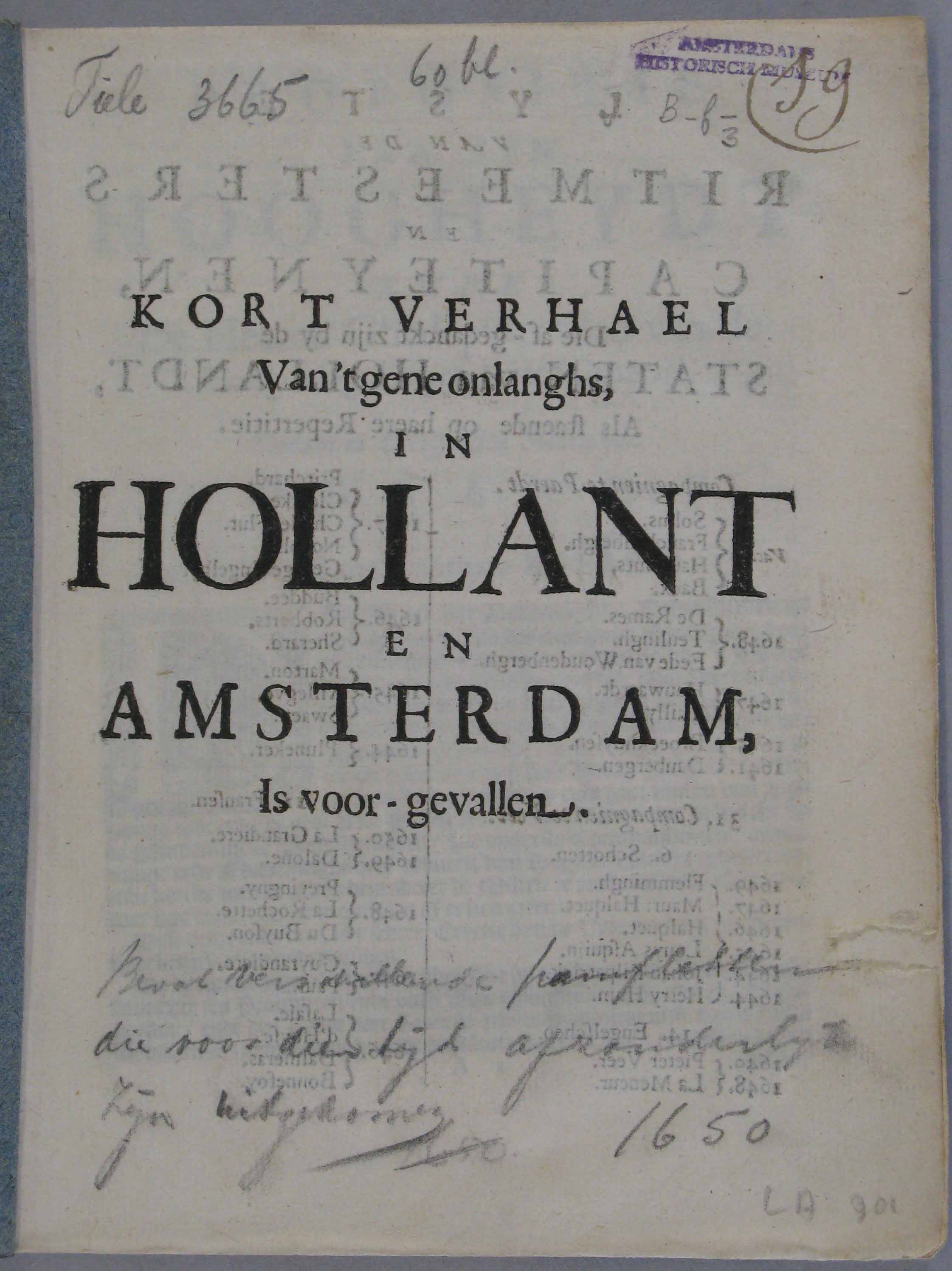Kort verhael, Van 't gene onlanghs in Hollant en Ams...