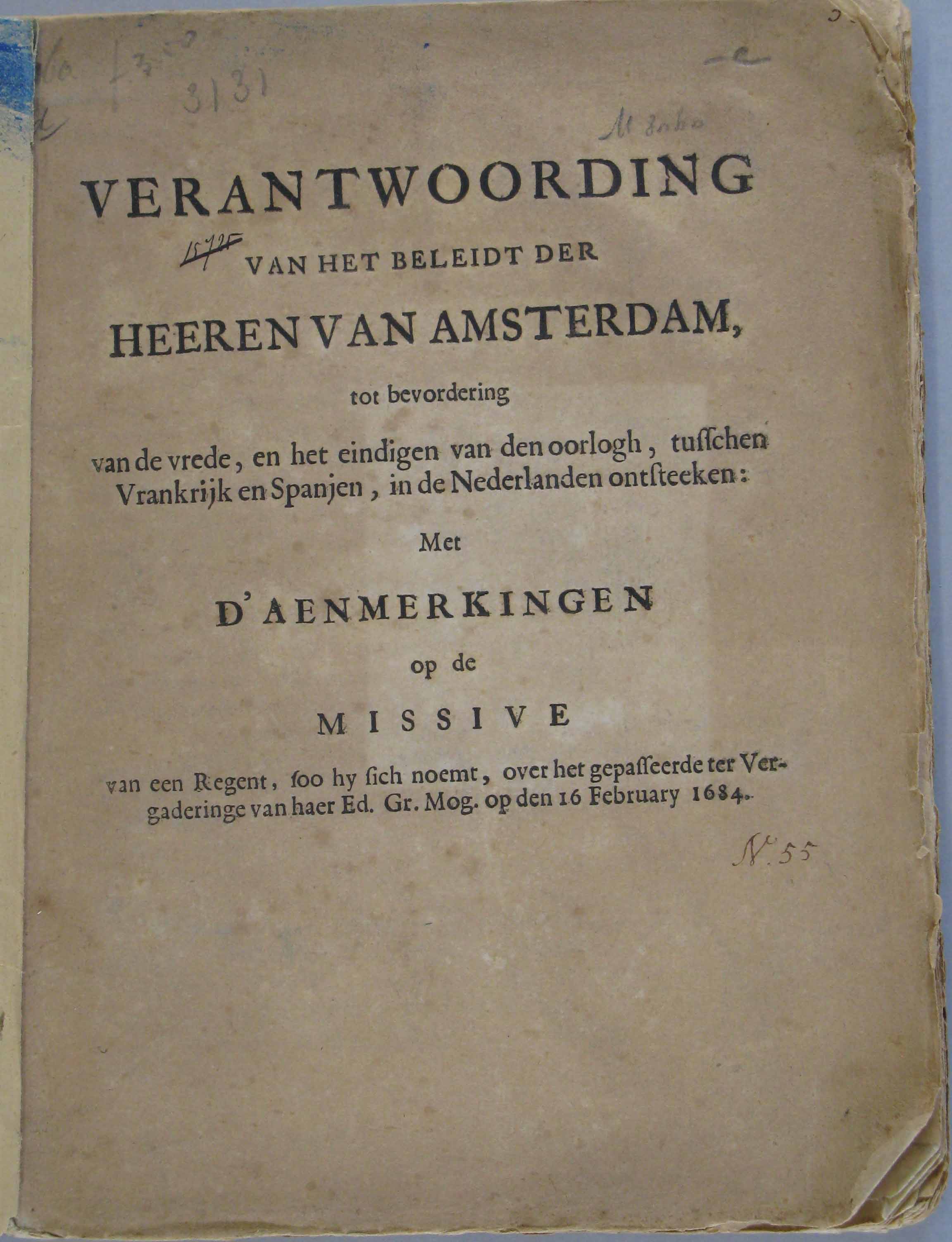 Verantwoording van het beleidt der Heeren van Amster...