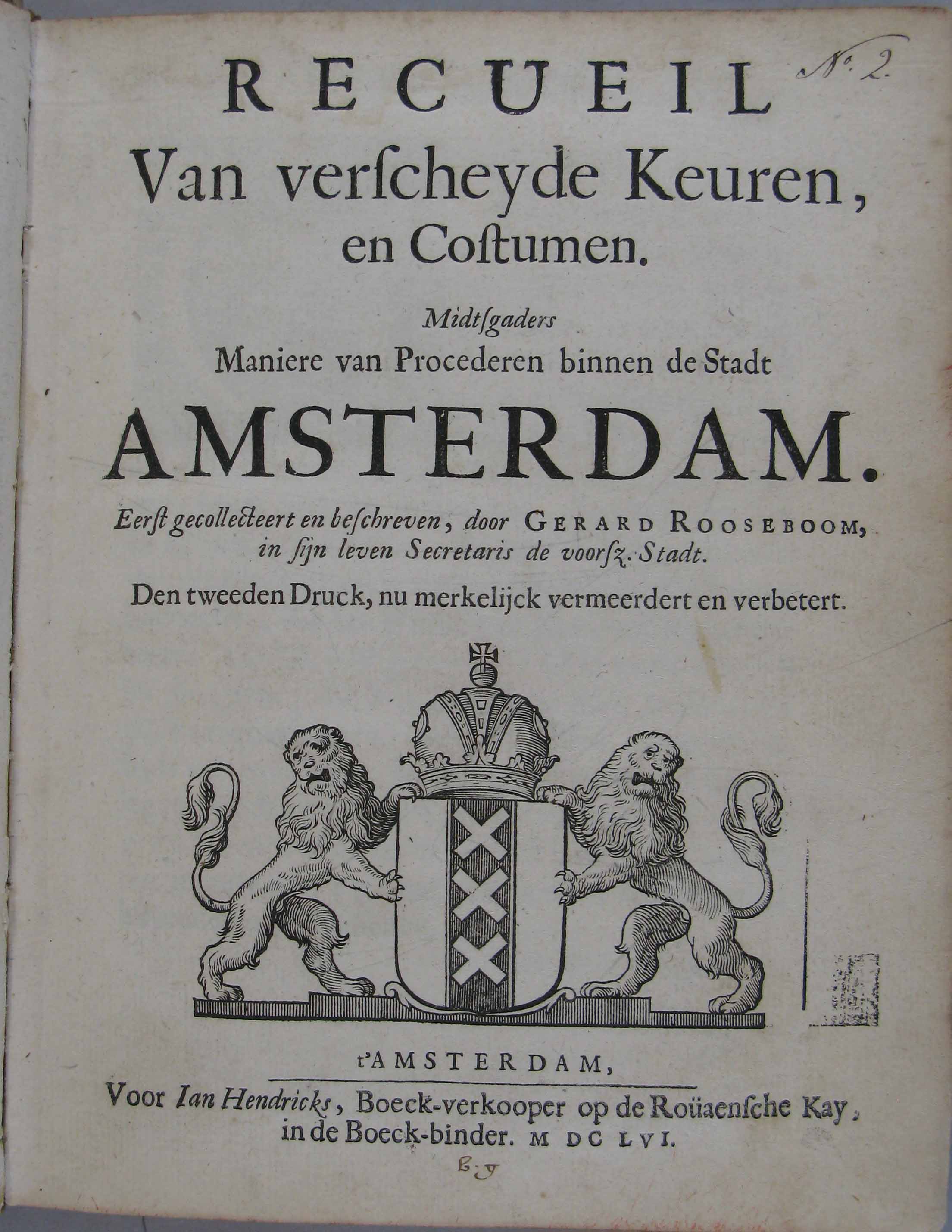 Recueil van verscheyde Keuren en Costumen. Mitsgader...