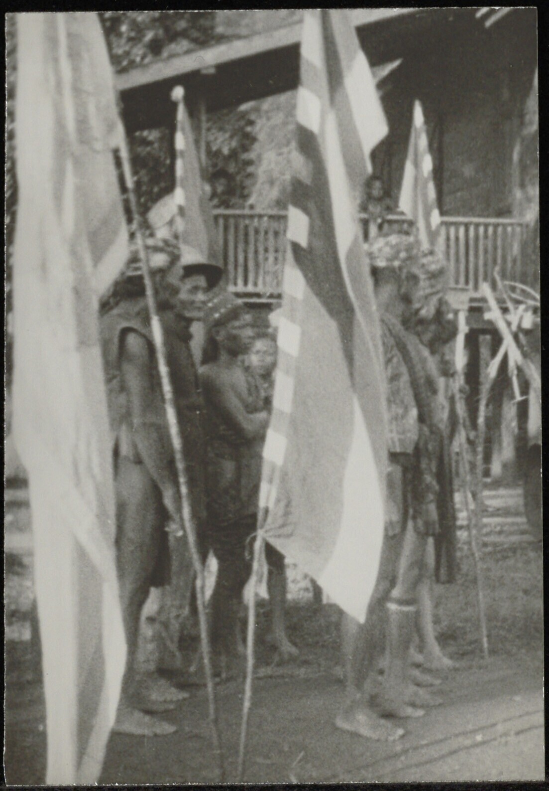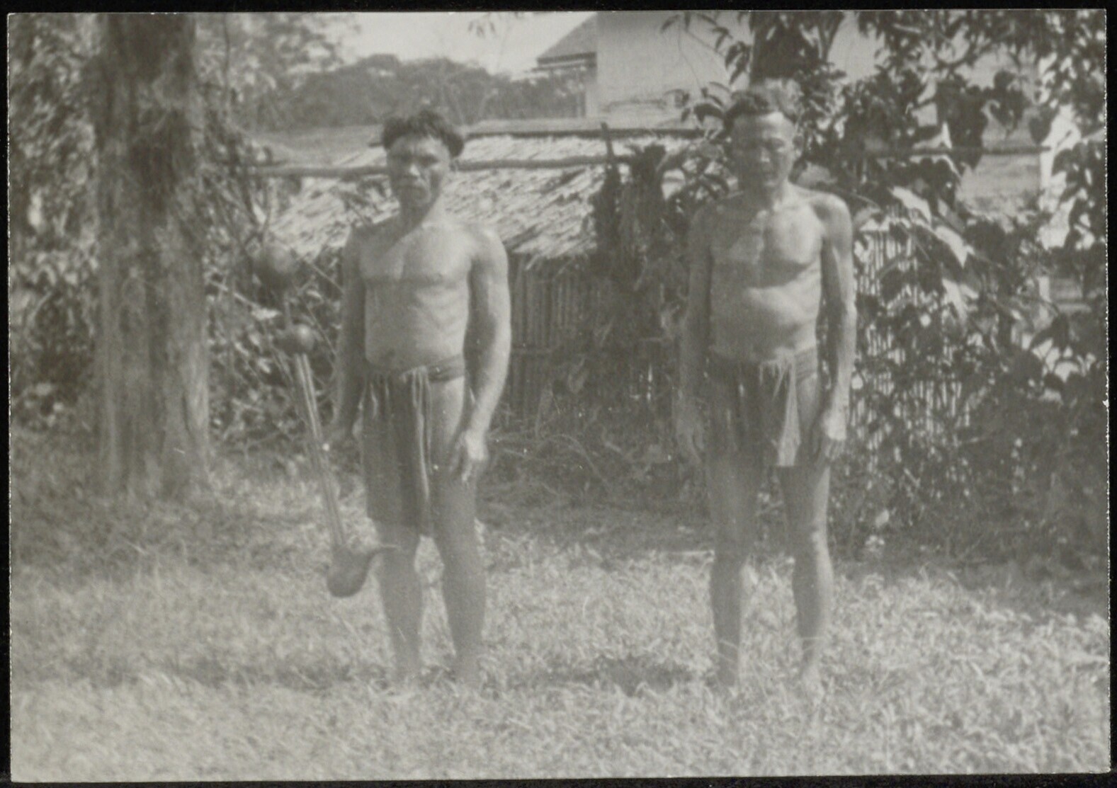 Groepsportret van twee Batang Lupar Dayak mannen