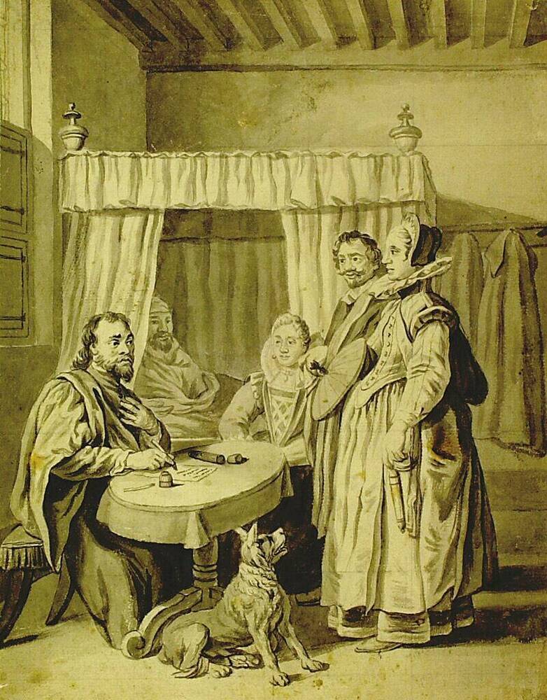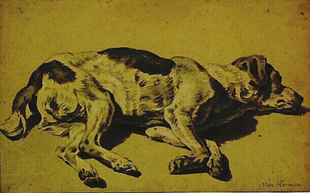 Zwart-wit foto van een olieverfschilderij van Godefr...