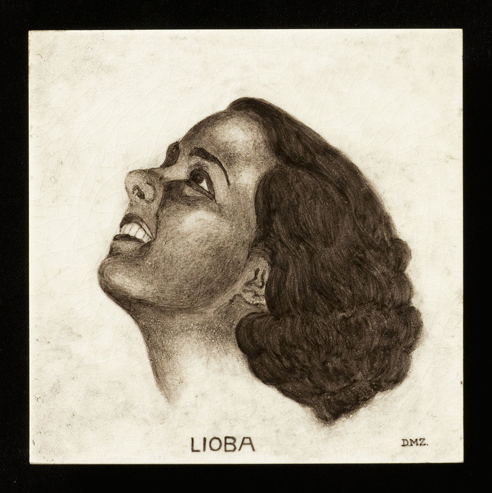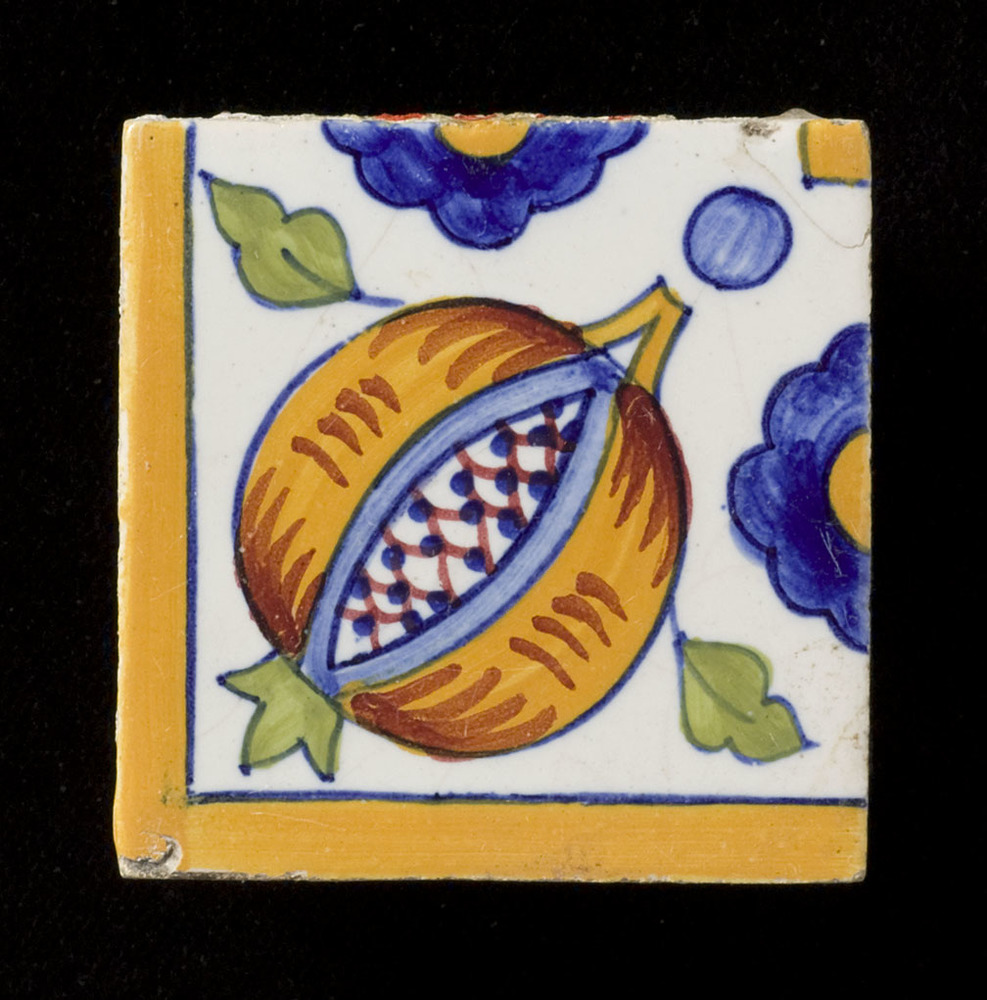 Tegel van keramiek, tinglazuur, voorstellende een or...