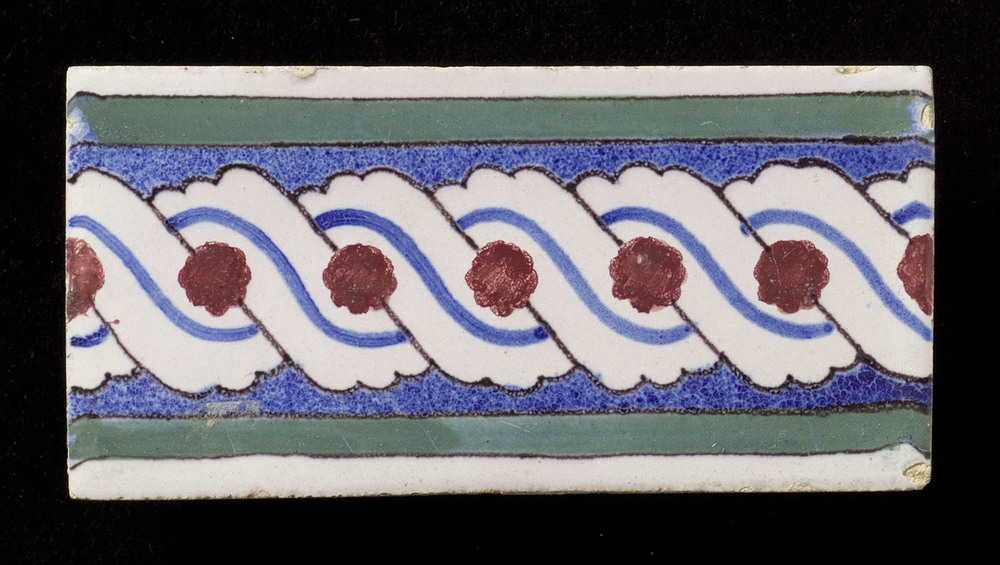 Randtegel in tinglazuur, voorstellende Vestibuleroos...