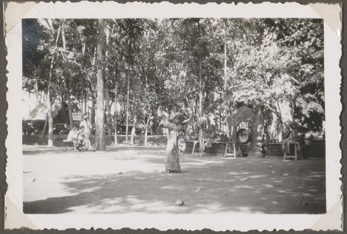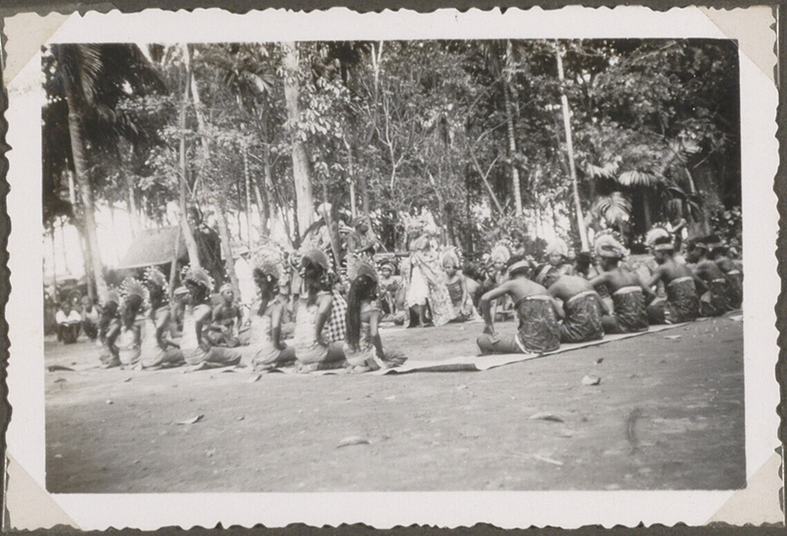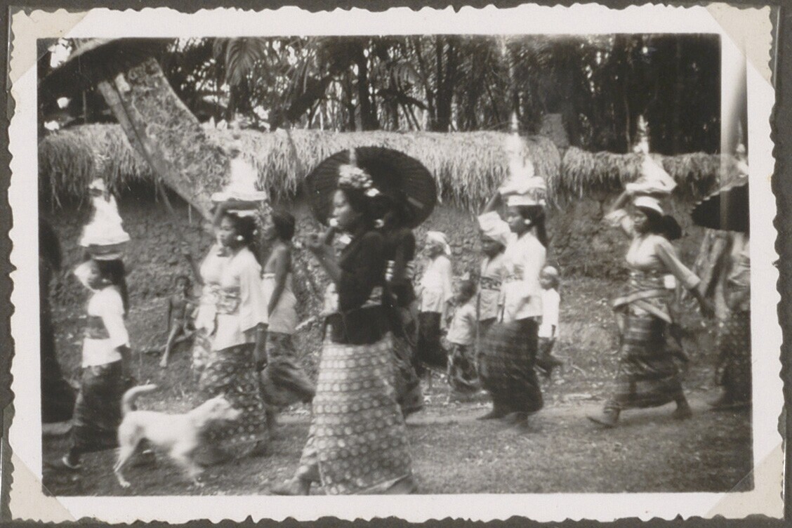 Balinees gezelschap met offerattributen