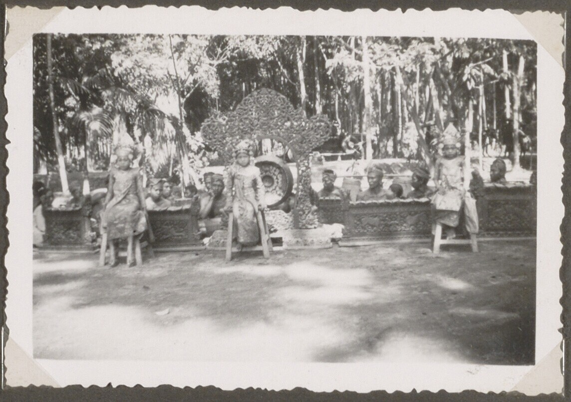 Portret van drie Balinese danseresjes