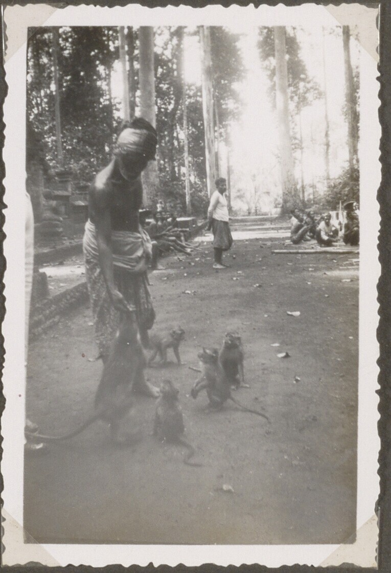 Balinese man voedert aapjes