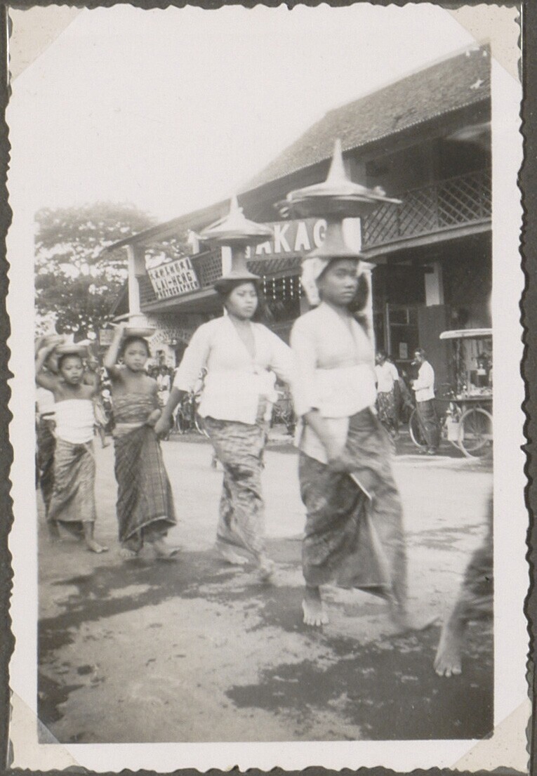 Balinese vrouwen en kinderen met offerattributen