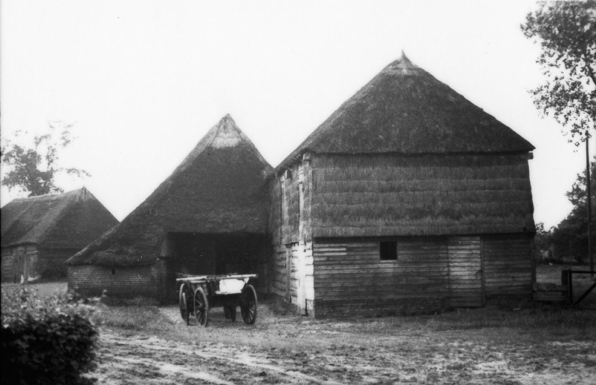 Bijschuur en boerenwagen, Zwiggelte, 1937 (zwart-wit...