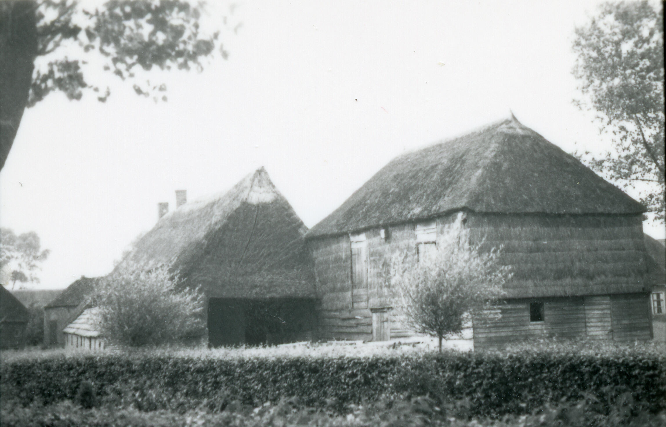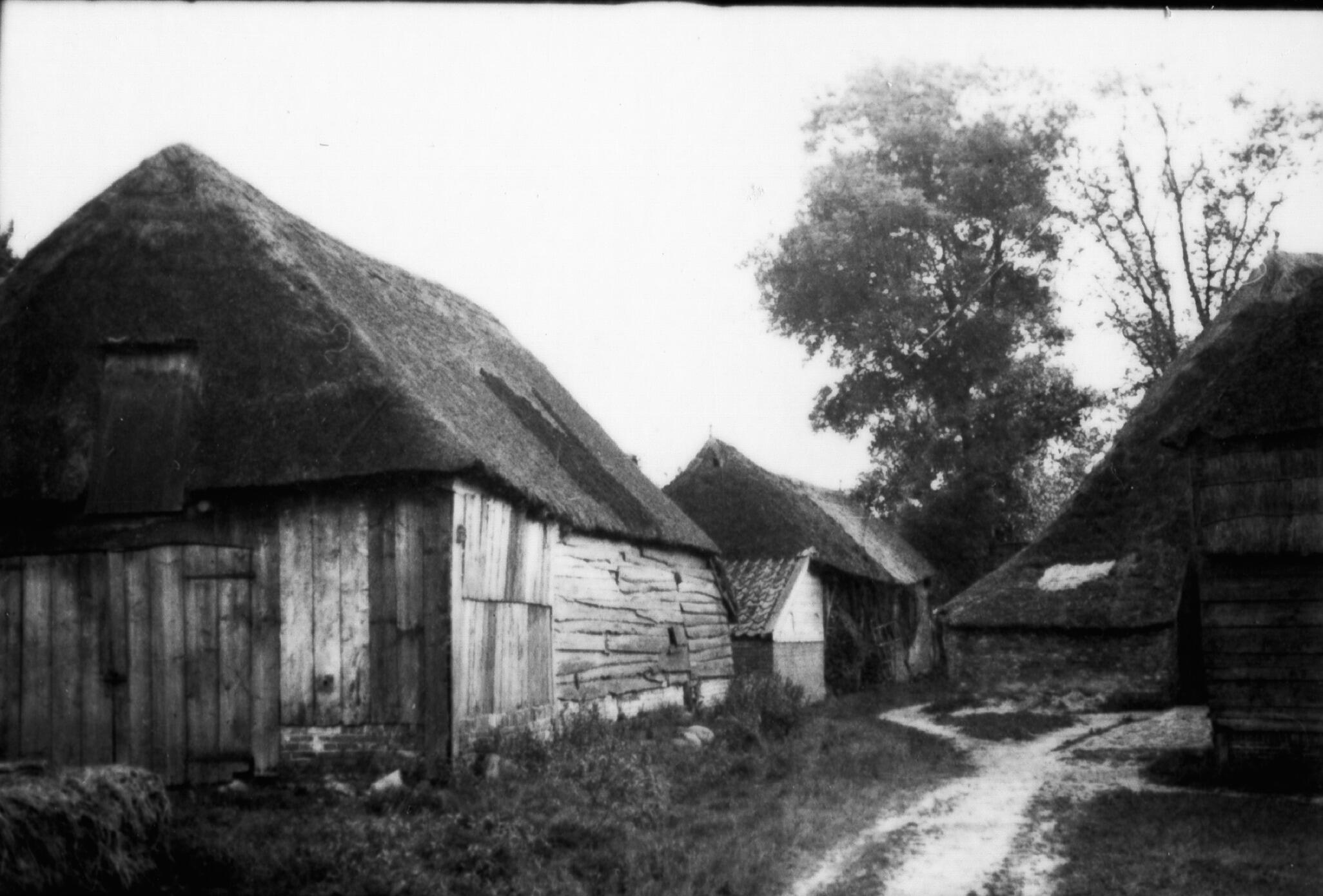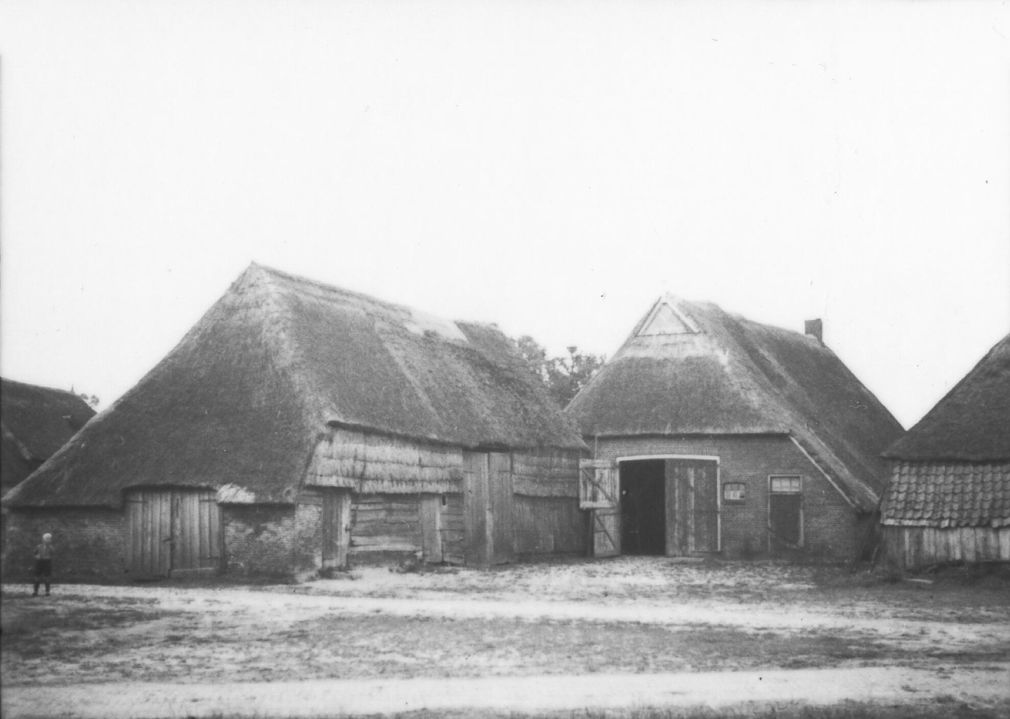 Boerenerf met schuur, Zwiggelte, 1937 (zwart-wit foto)