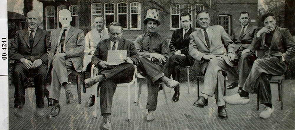 Zwart-wit foto van de jubilarissen van Harmonie Wilh...