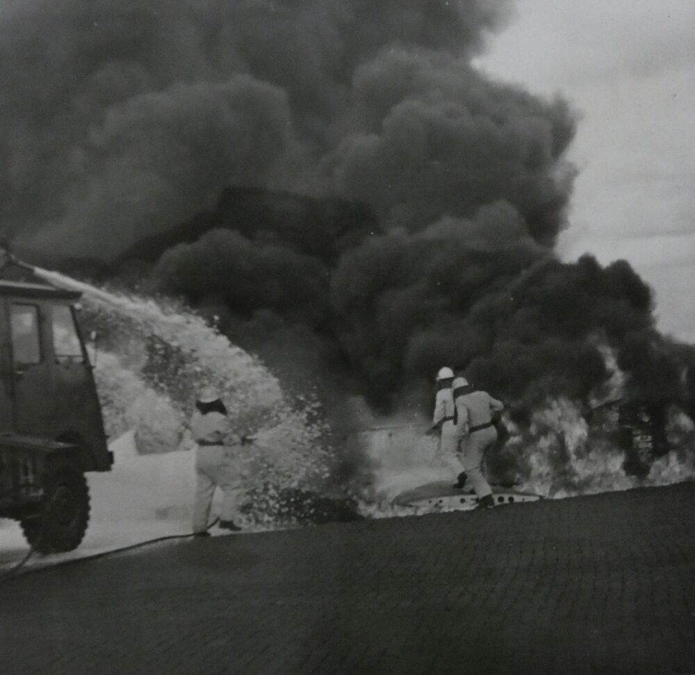 Blusoefening, op de achtergrond een Republic Thunder...