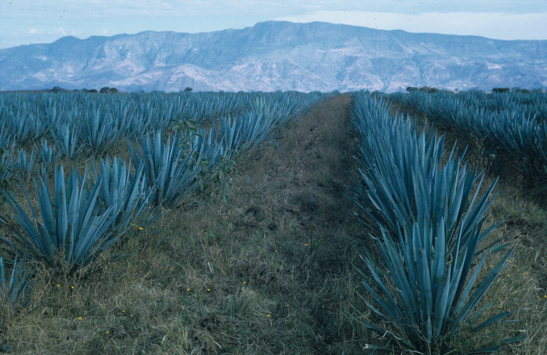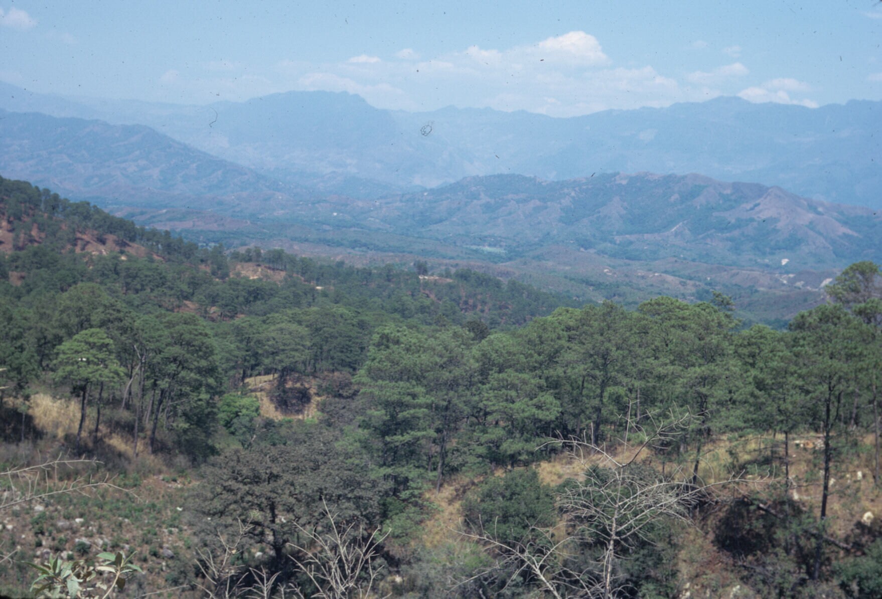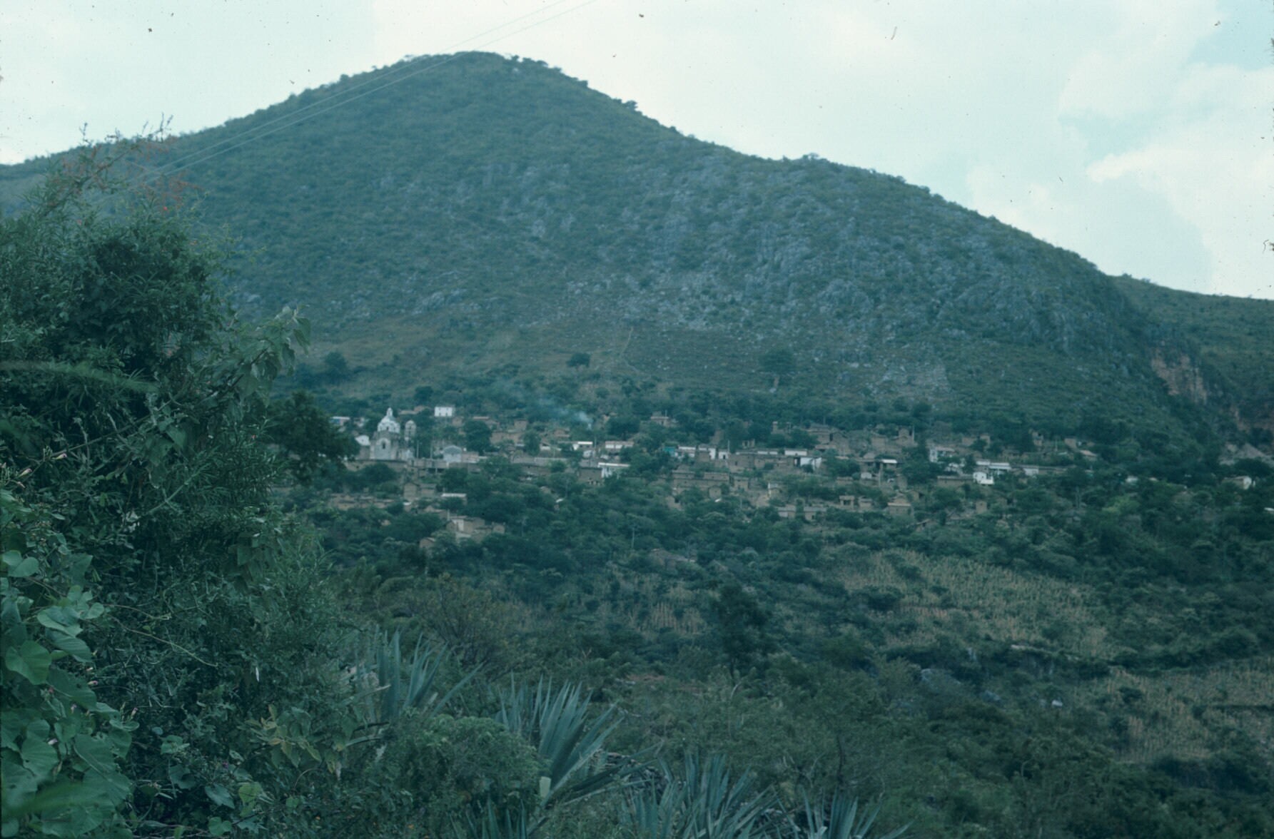 Vallei van Oaxaca vanuit Yagul, met opuntia's (nopal...
