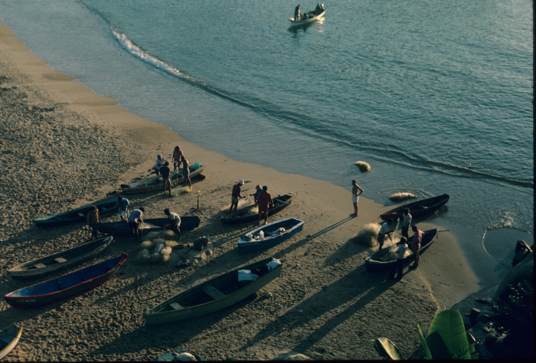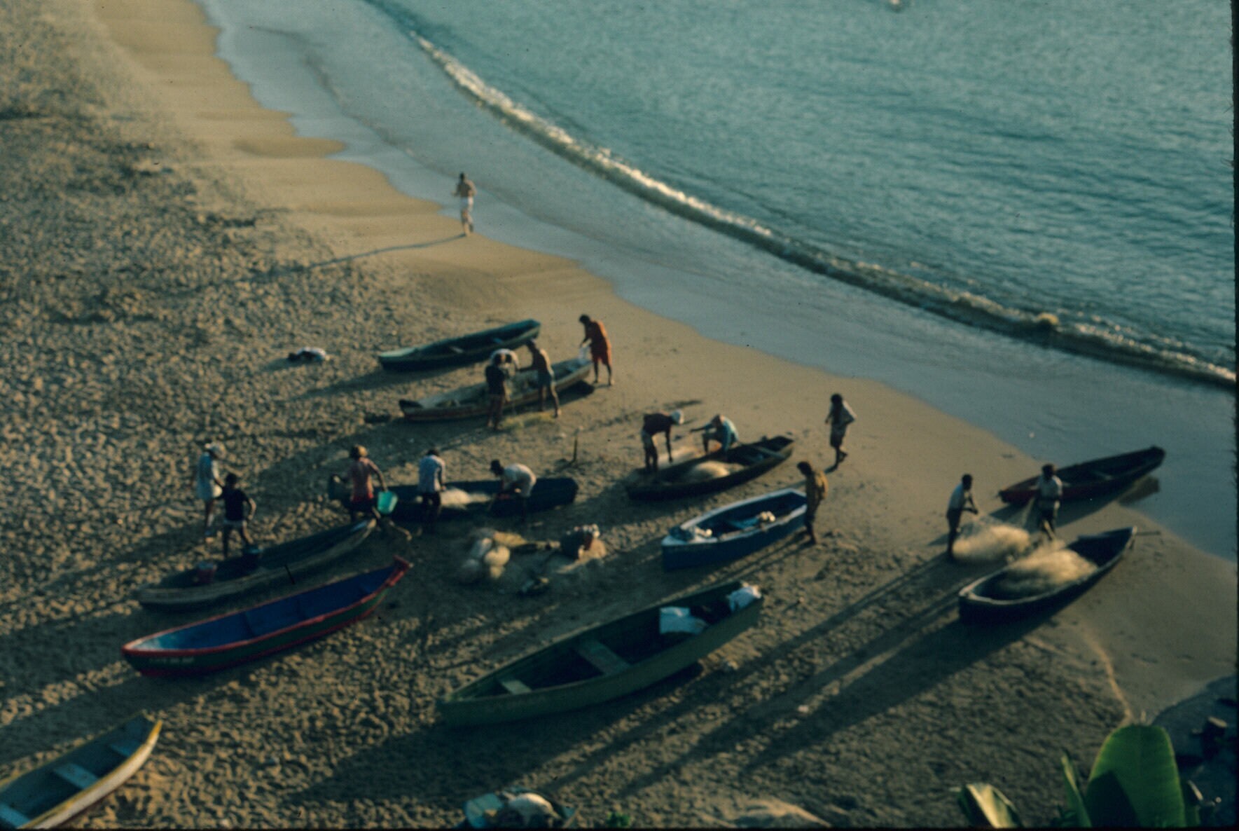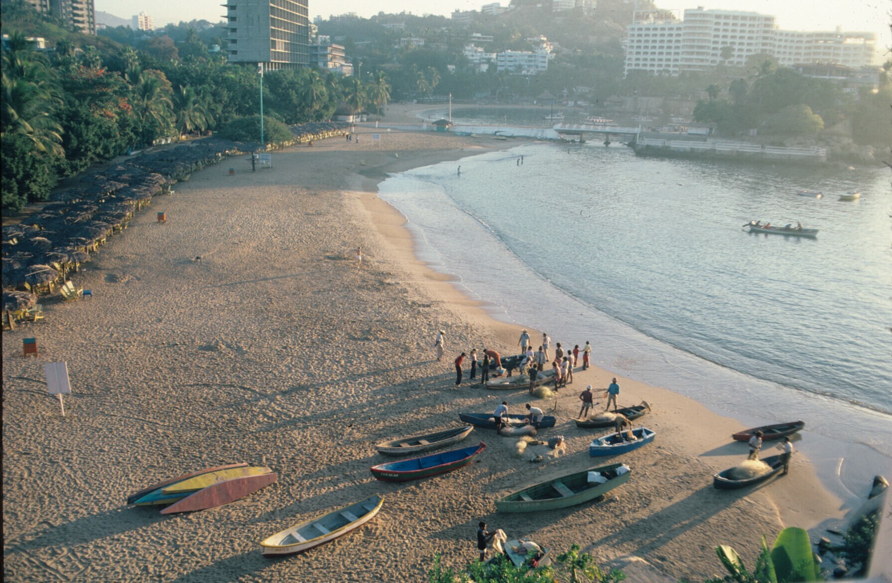 La Caleta, baai van Acapulco; vissersbootjes op strand