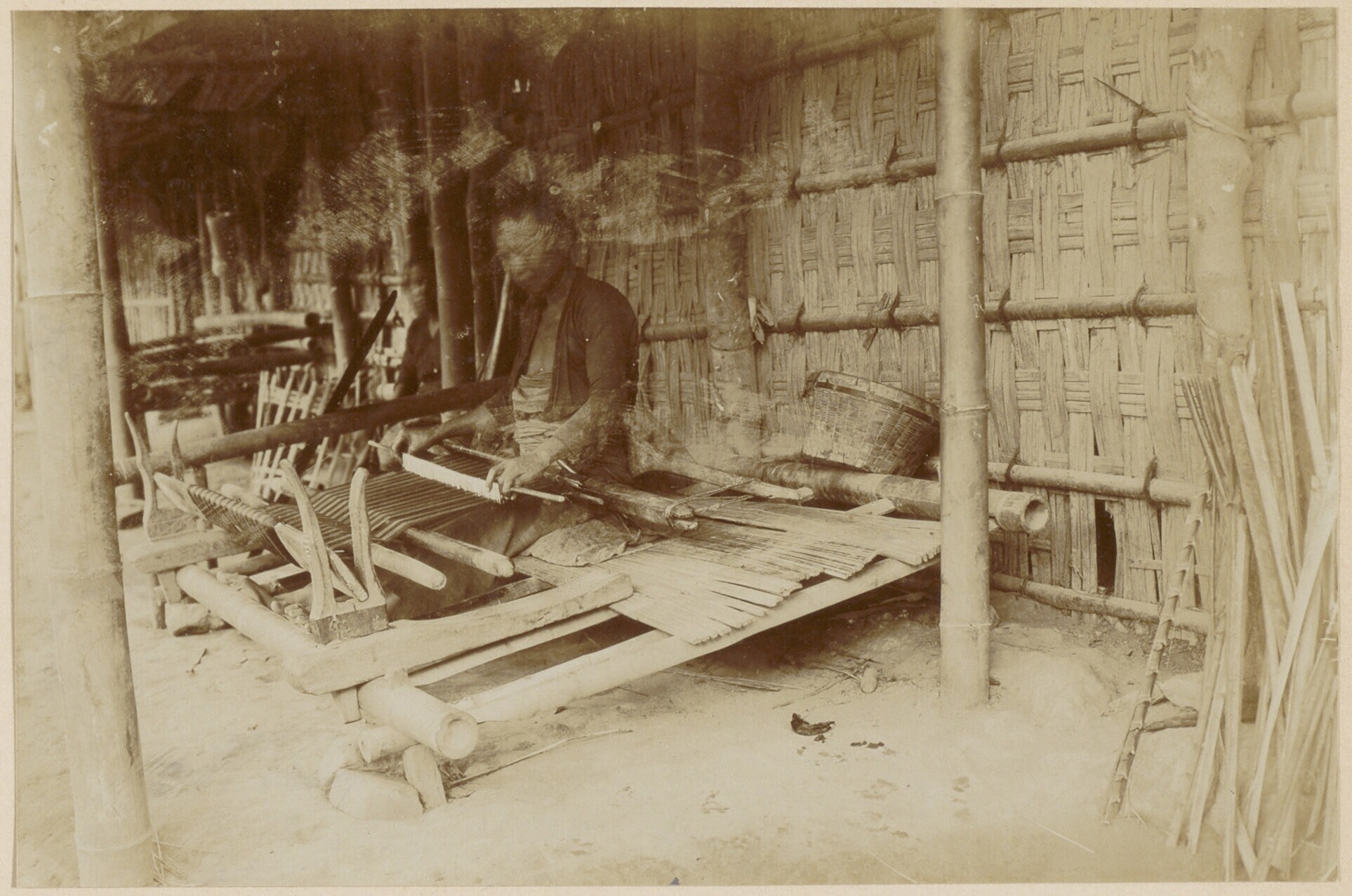 Javaanse arbeiders aan het werk in een schuur van ee...