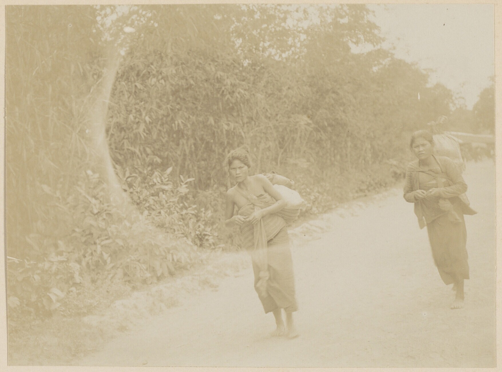Vrouwen met veel bagage in hun draagdoeken