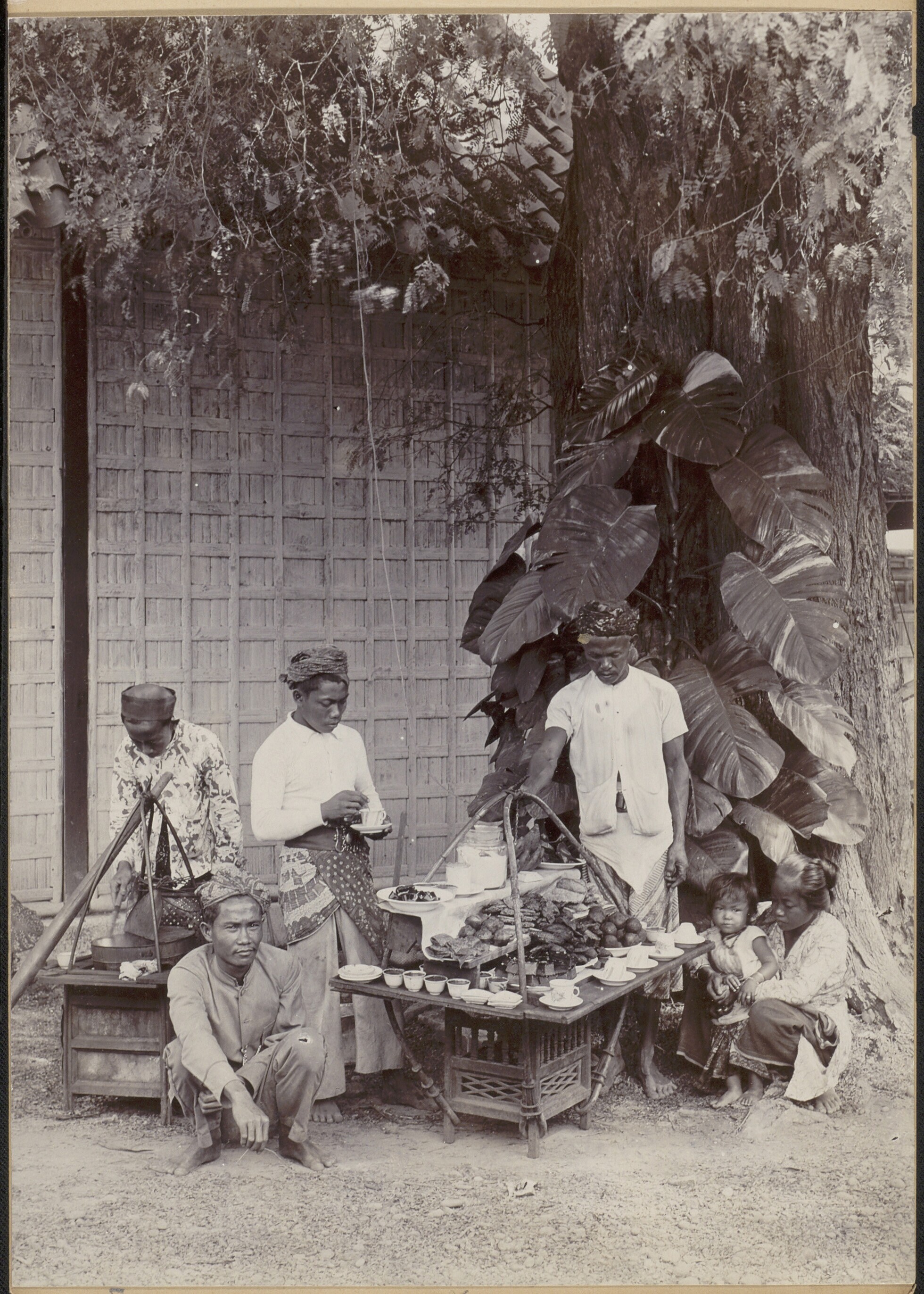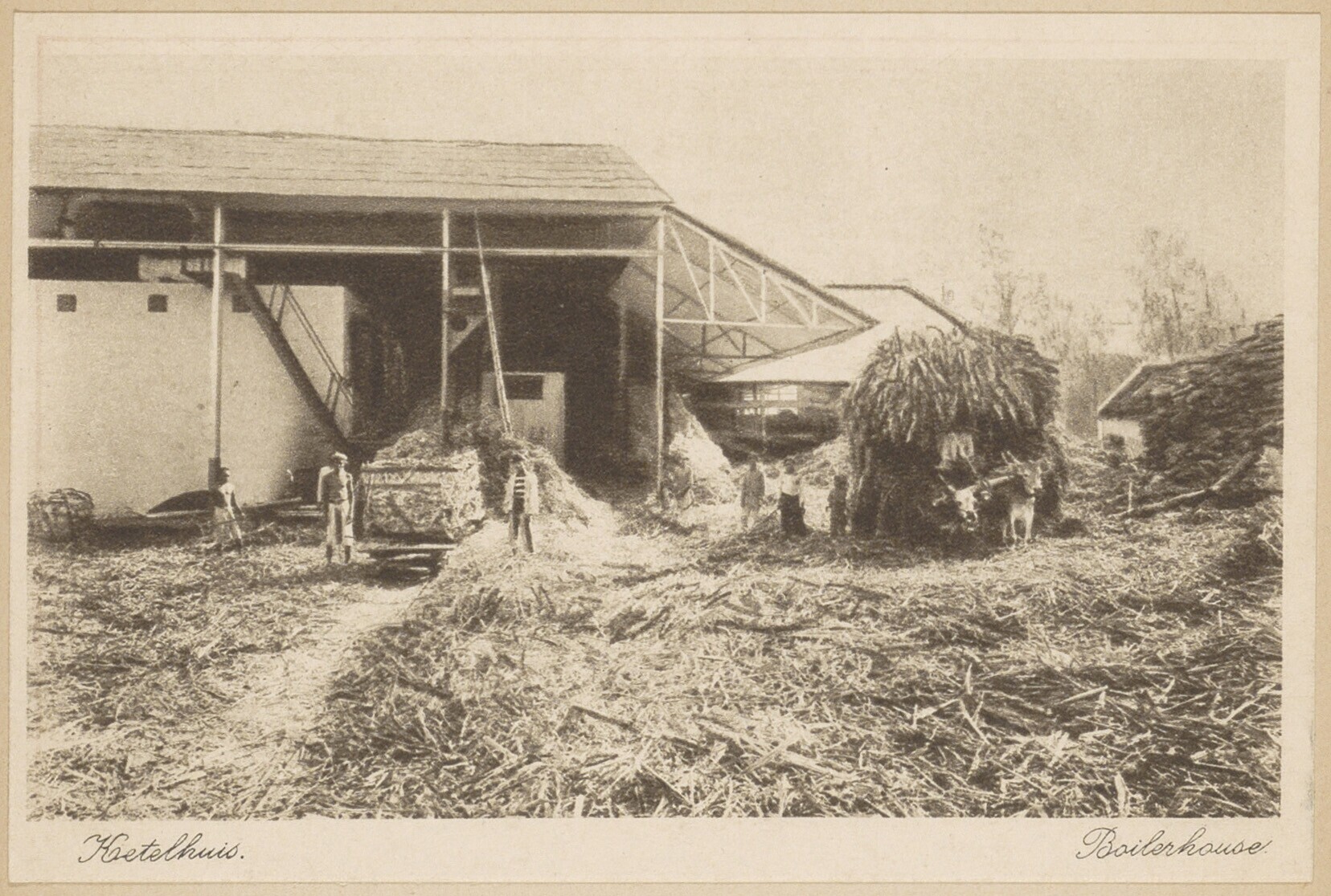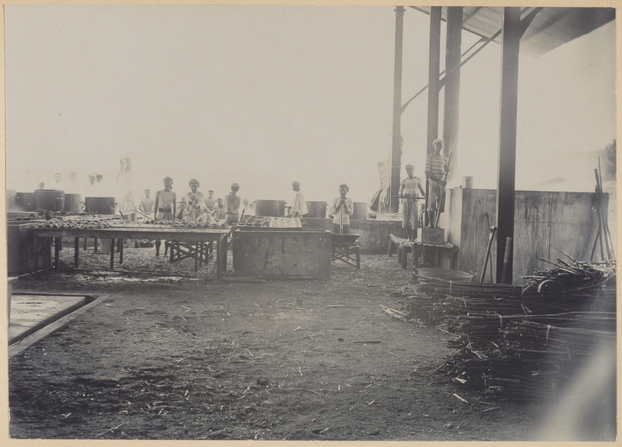 Loods op Java met ketel en arbeiders, op de voorgron...