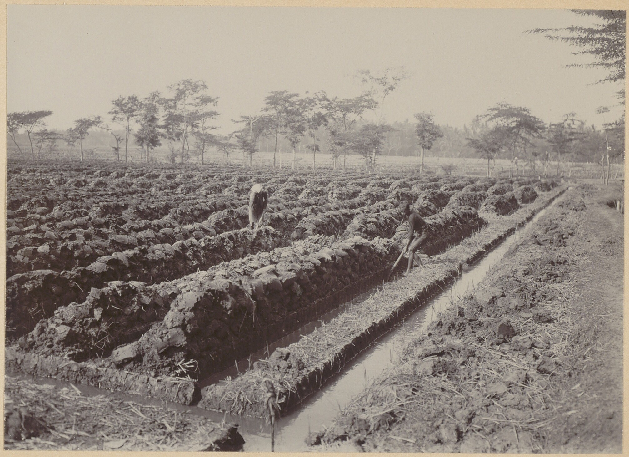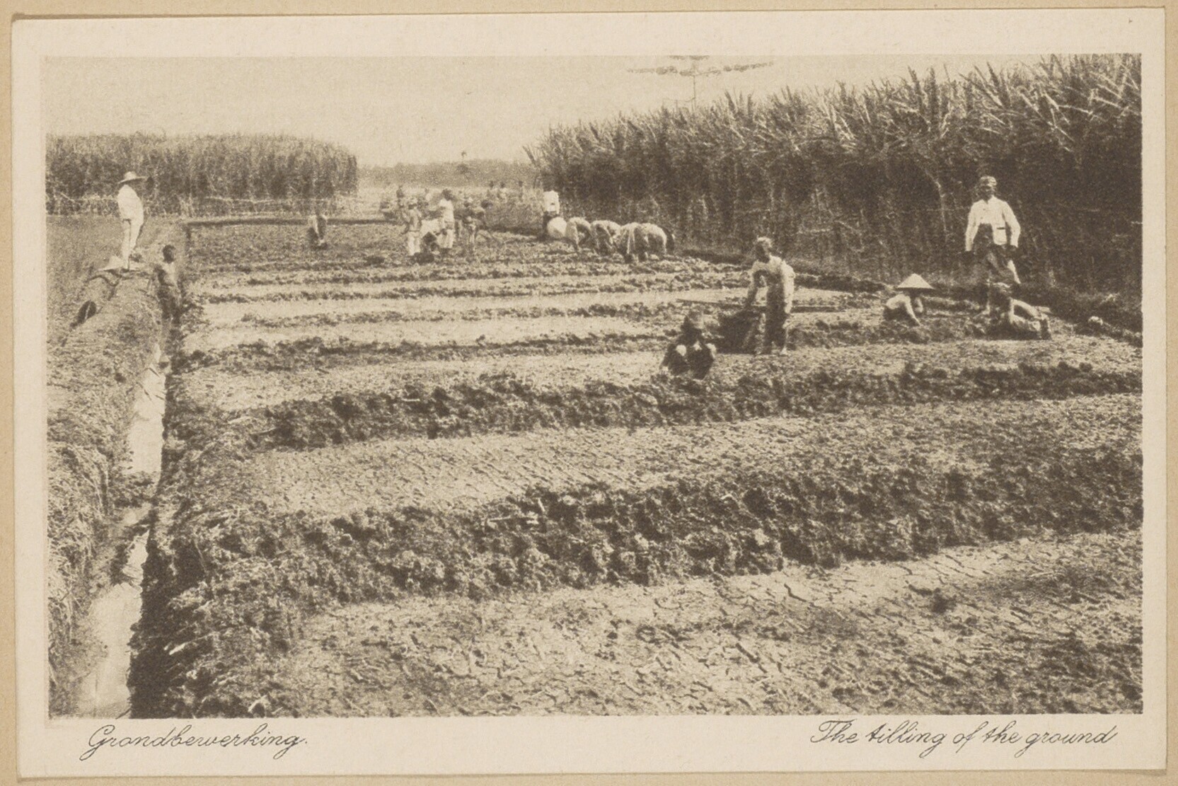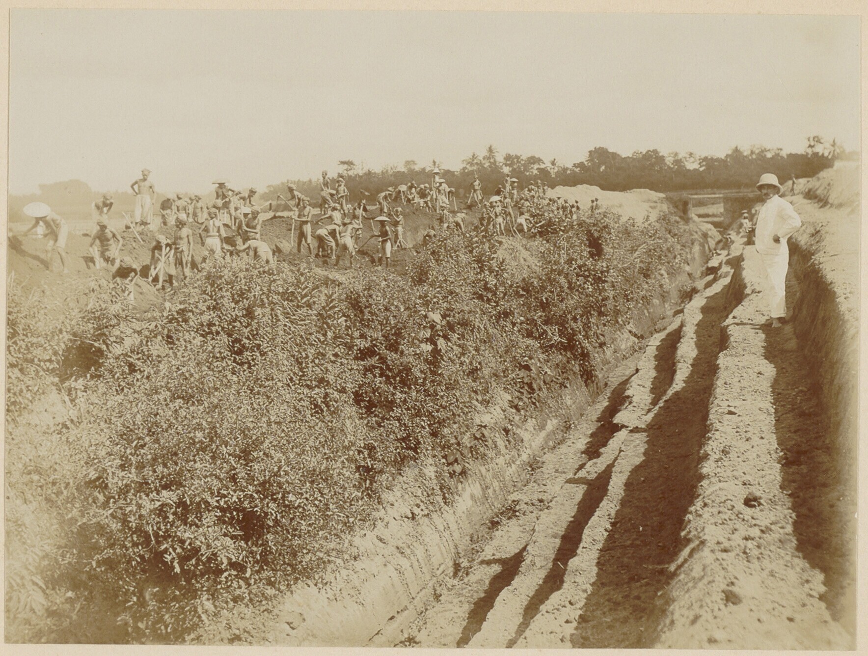 Graafwerkzaamheden door Javaanse arbeiders op een pl...