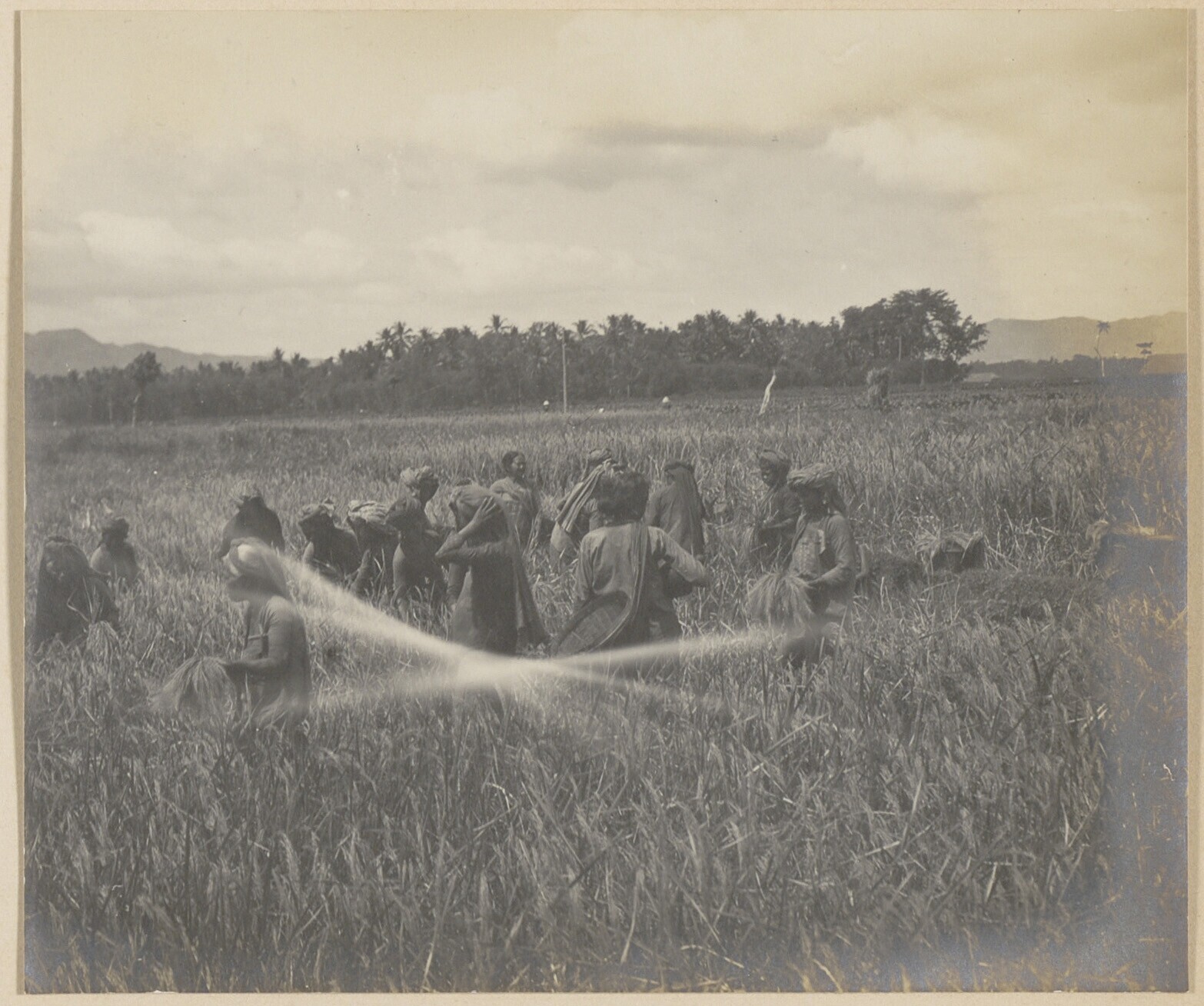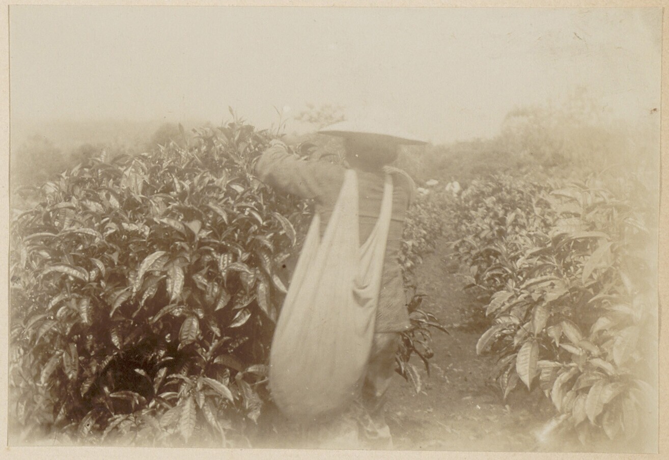 Javaanse arbeiders op een plantage tabaksplanten
