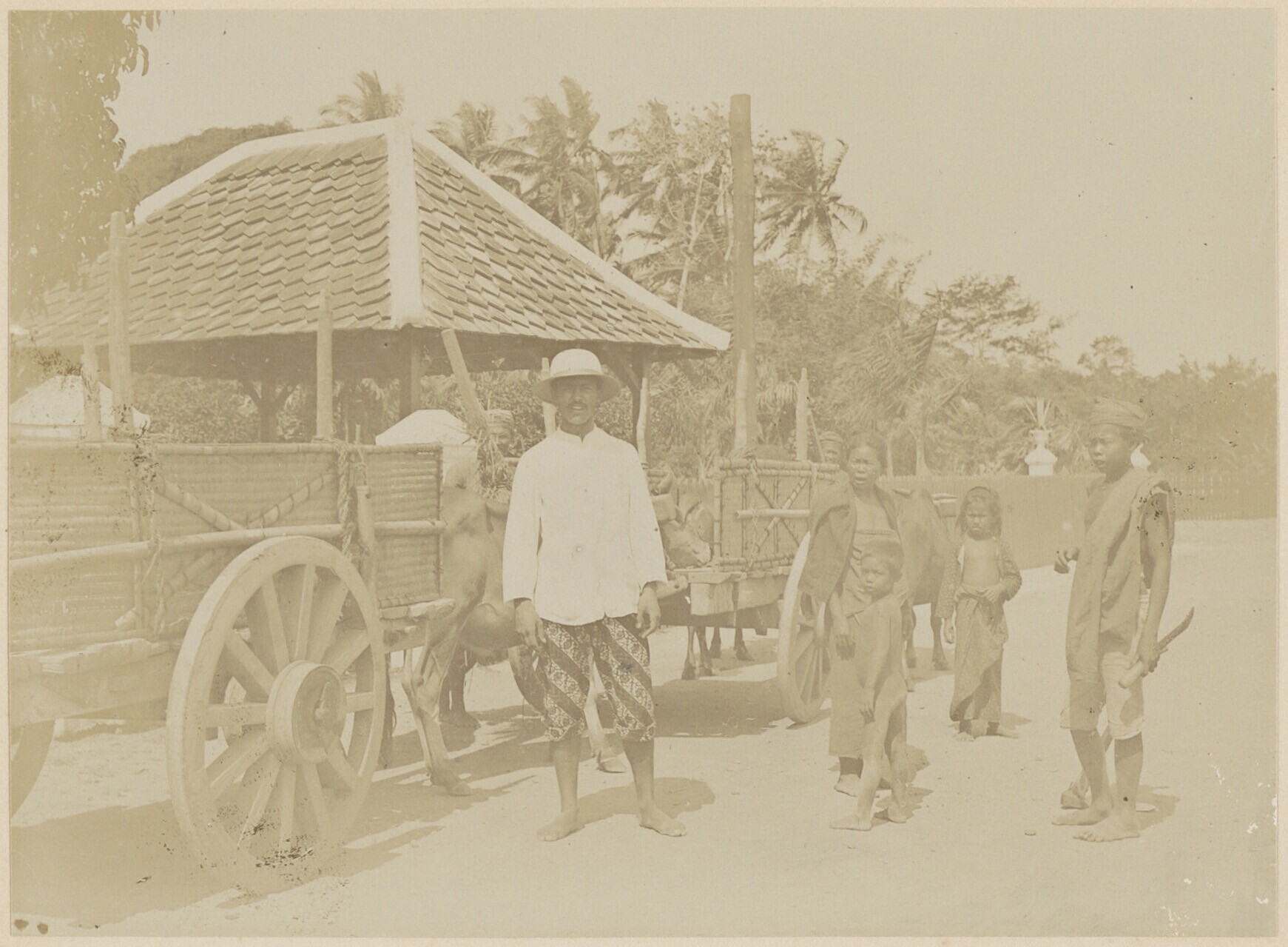 Houten ossenkarren met Javanen