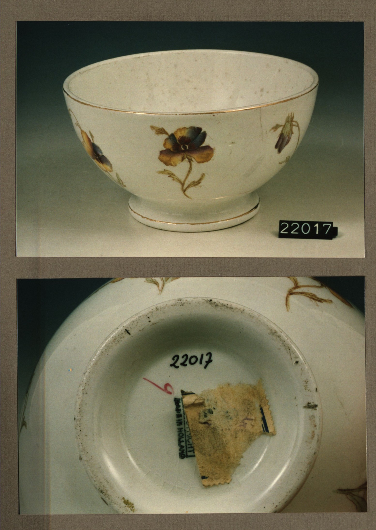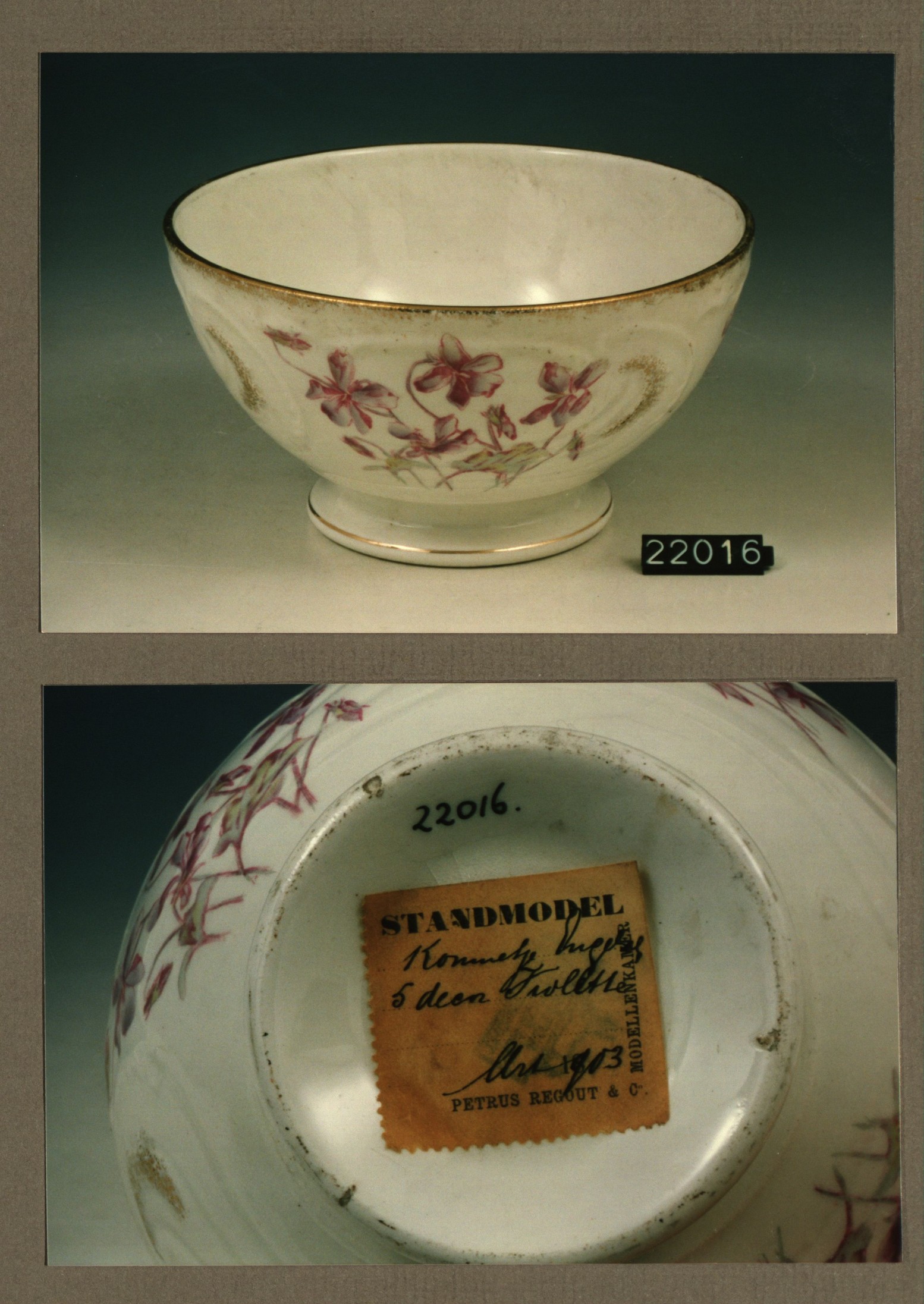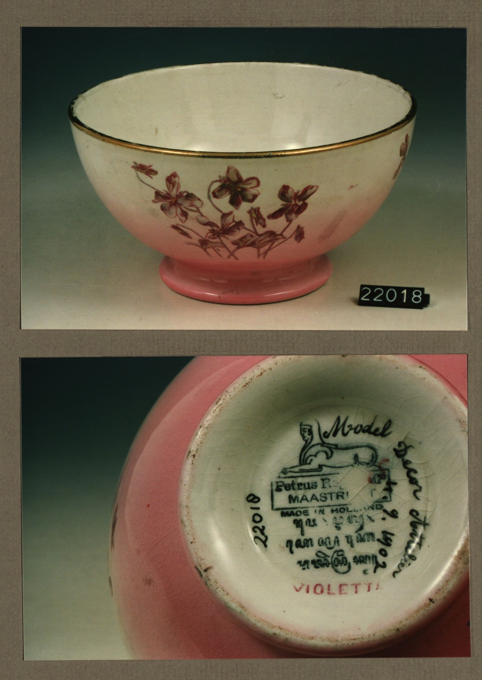 Kom zonder deksel, model Engelsch met decor Violette