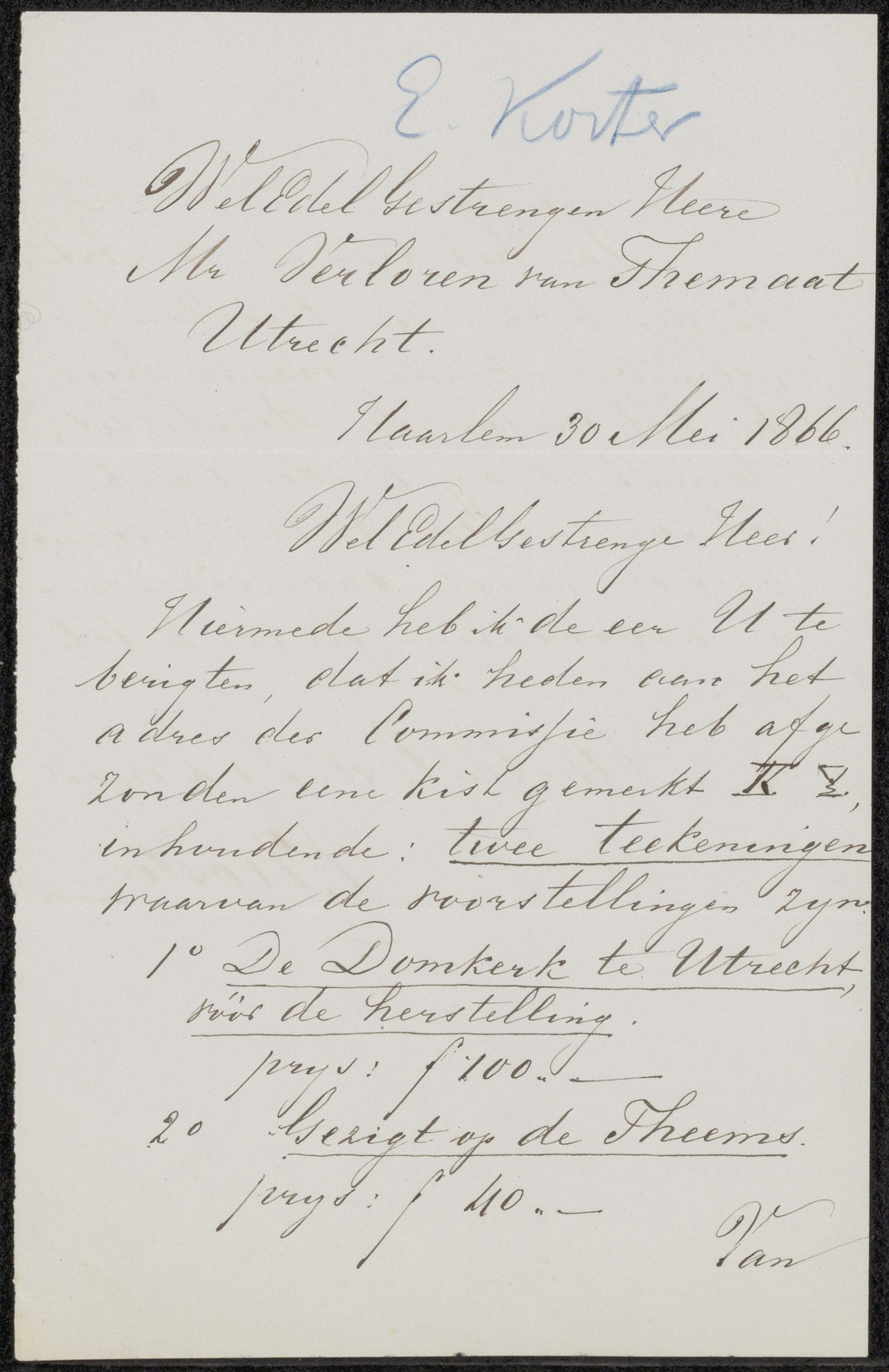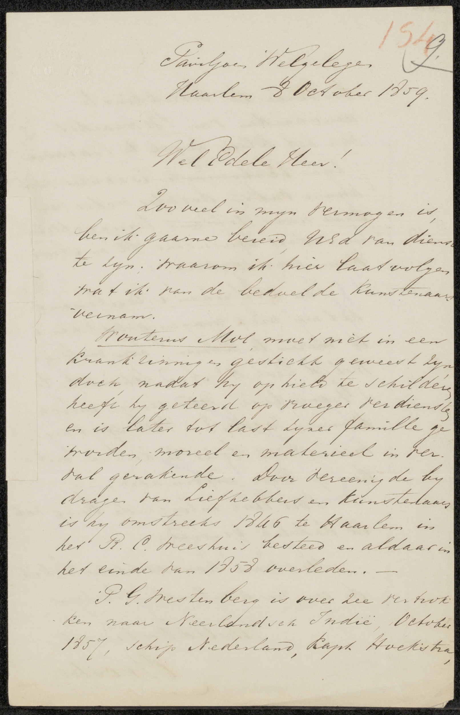 Brief aan jonkheer Charles Hubert de Stuers