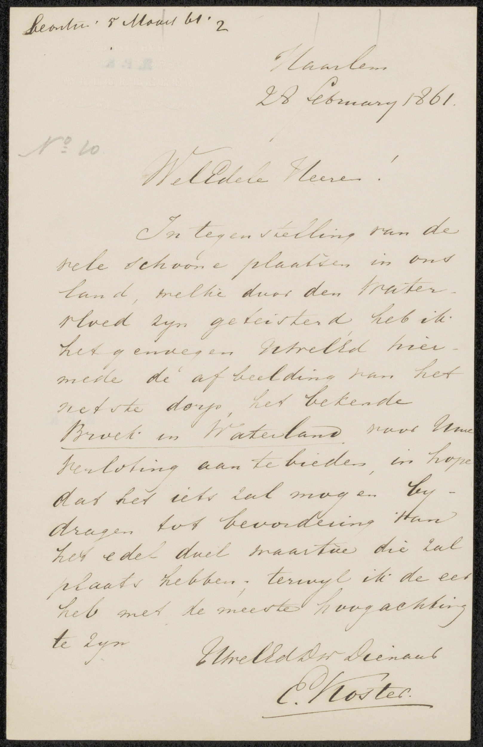 Brief aan Johannes Jacobus Franciscus Wap