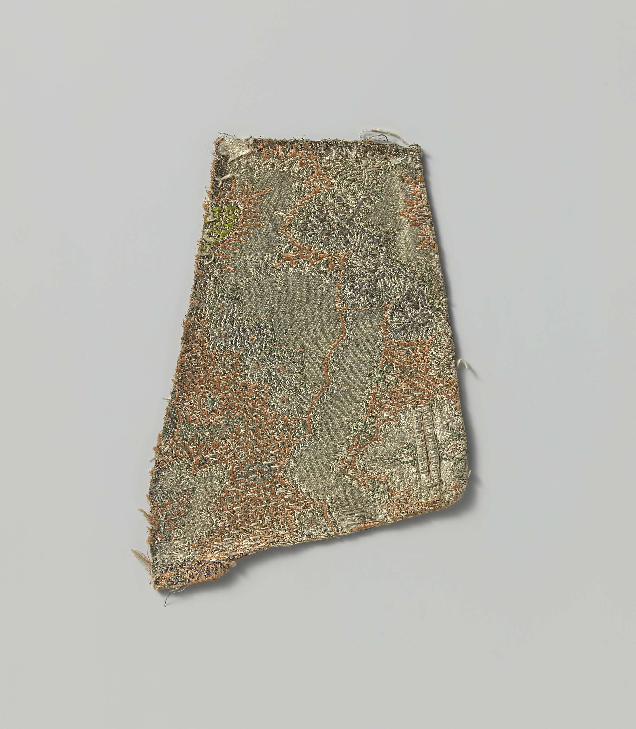 Fragment van bruin lampas met het liefdesverhaal Lay...
