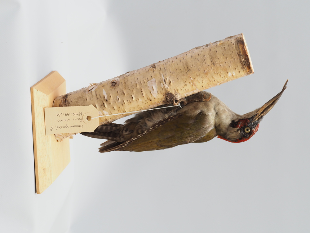Groene specht; snavel extreem doorgegroeid