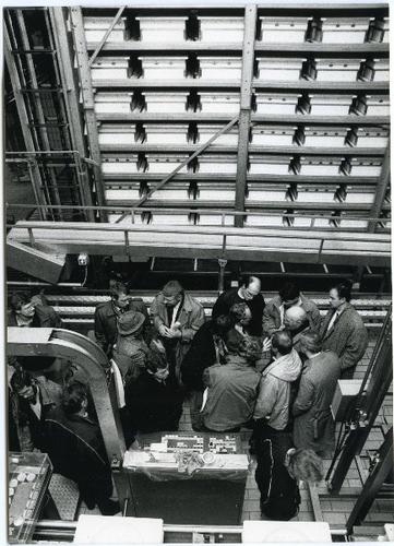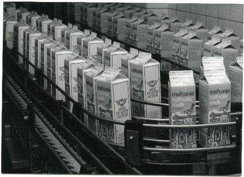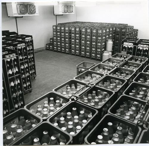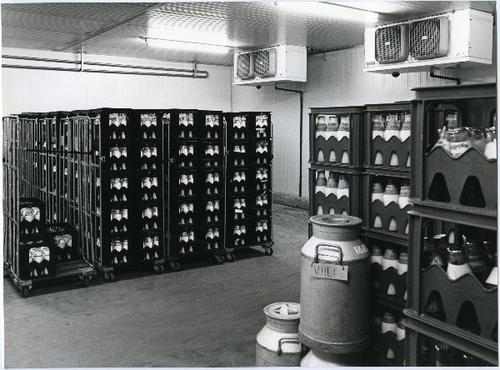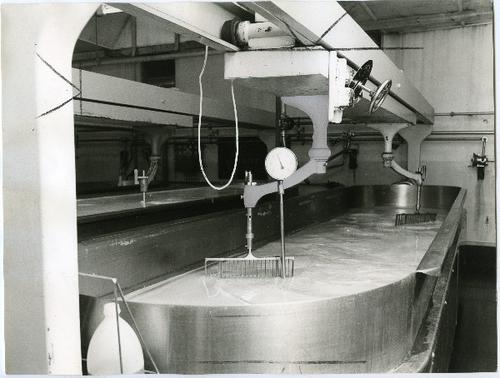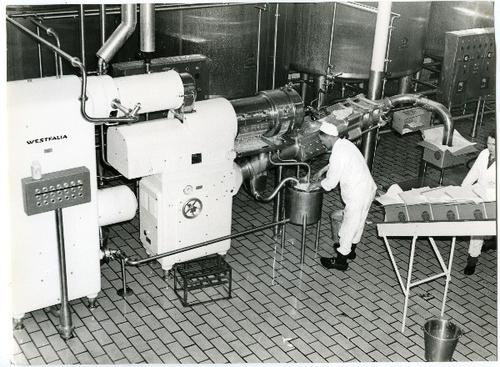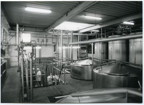 Foto in zwart-wit van een kijkje in de zuivelfabriek...