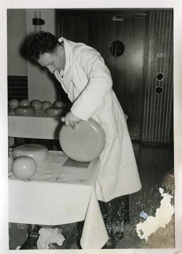 Foto in zwart-wit van een keurmeester van kaas