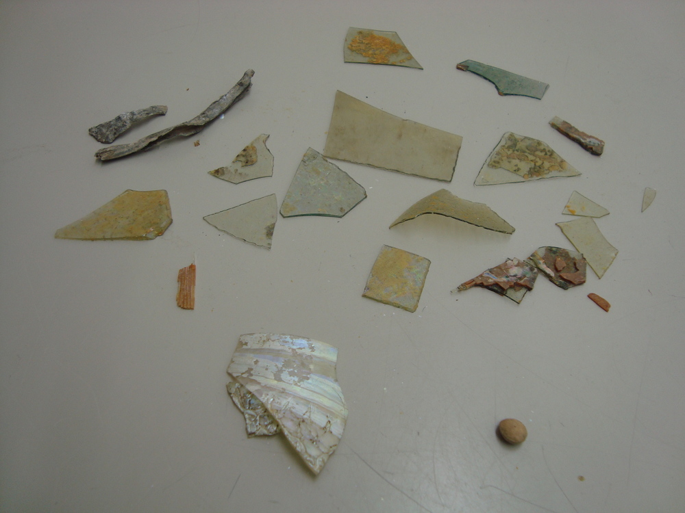Fragmenten, glas/aardewerk/lood,