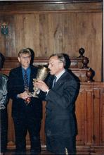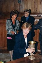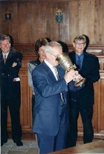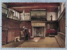 interieur van de Vierschaar met man in 17eeuwse kleding