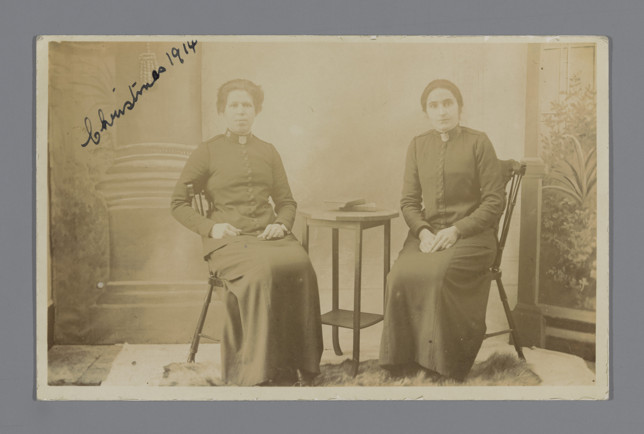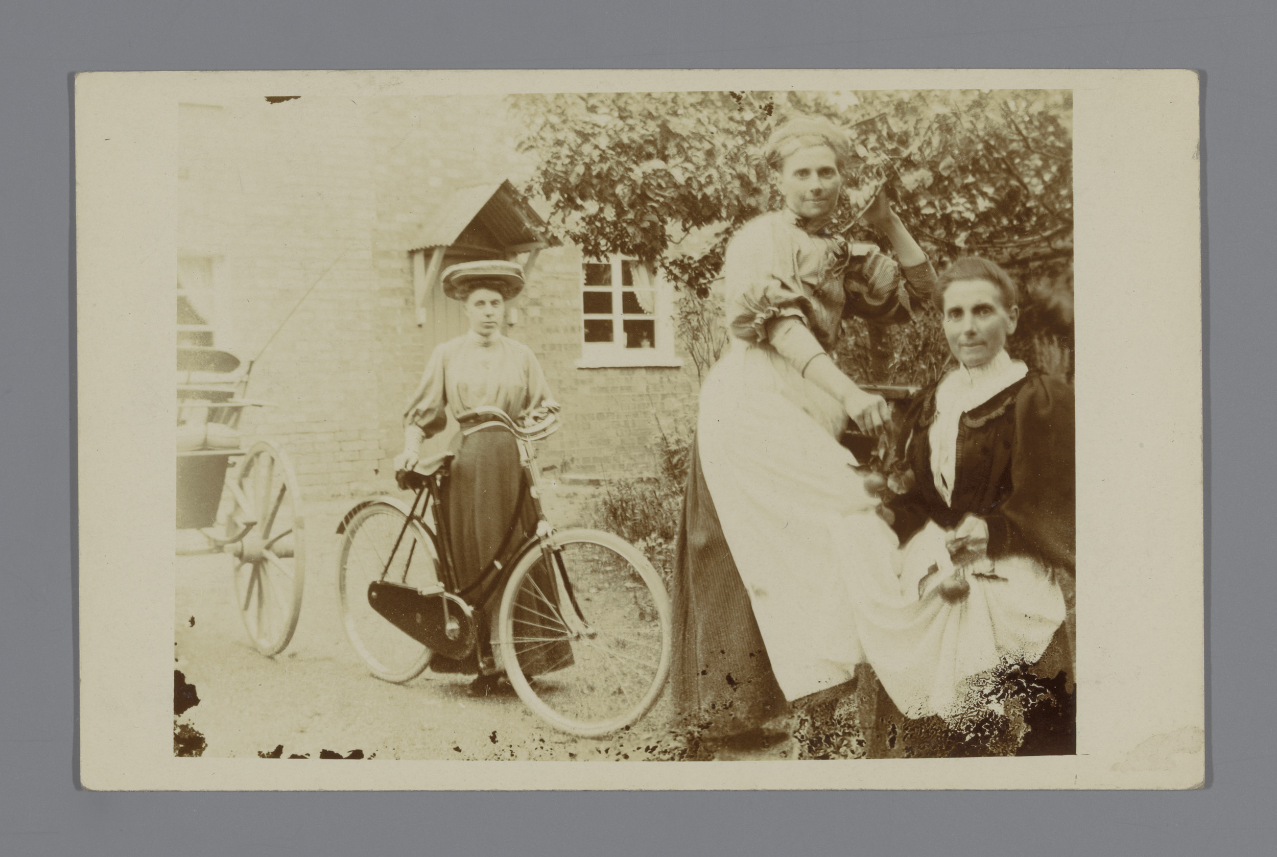Portret van twee onbekende vrouwen en een vrouw met ...