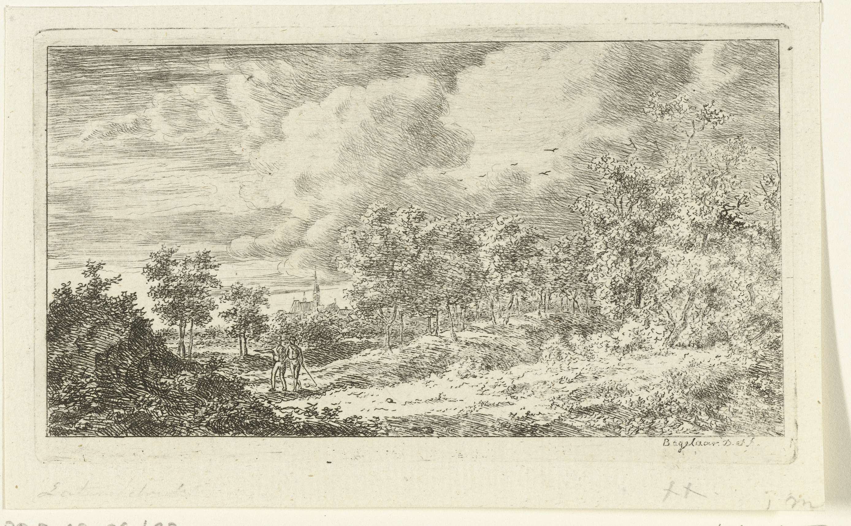 Landschap met twee wandelaars