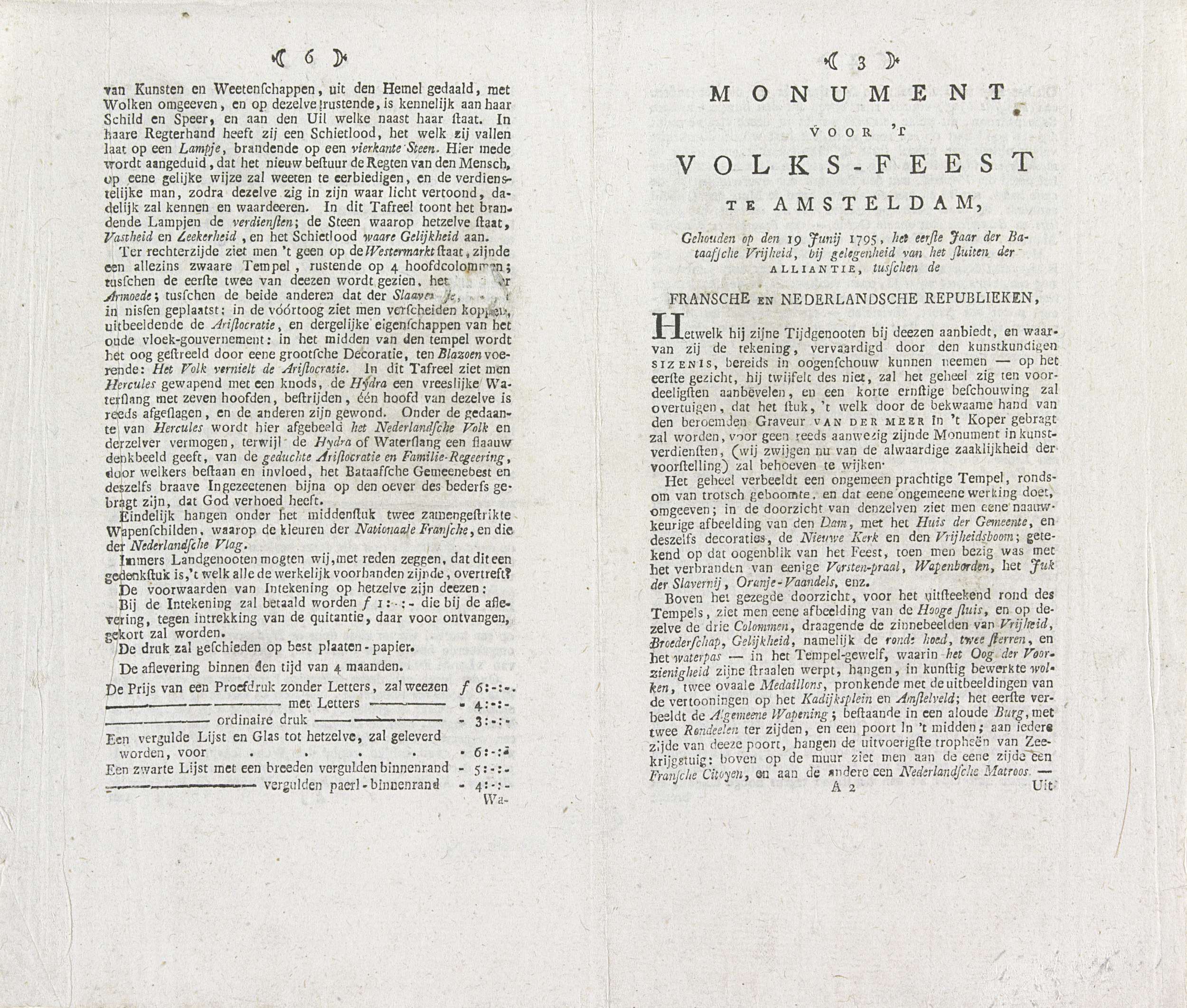 Prospectus voor de prent van het monument voor het A...