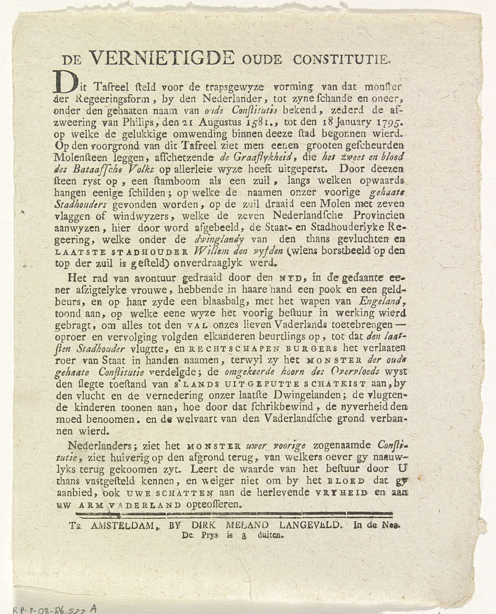 Proclamatie van de Representanten van Amsterdam, 1795