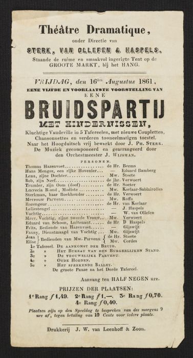 Programma van "Théâtre Dramatique", "eene bruidspart...