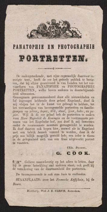 Drukwerk waarin Cook zich aanprijst als maker van "P...