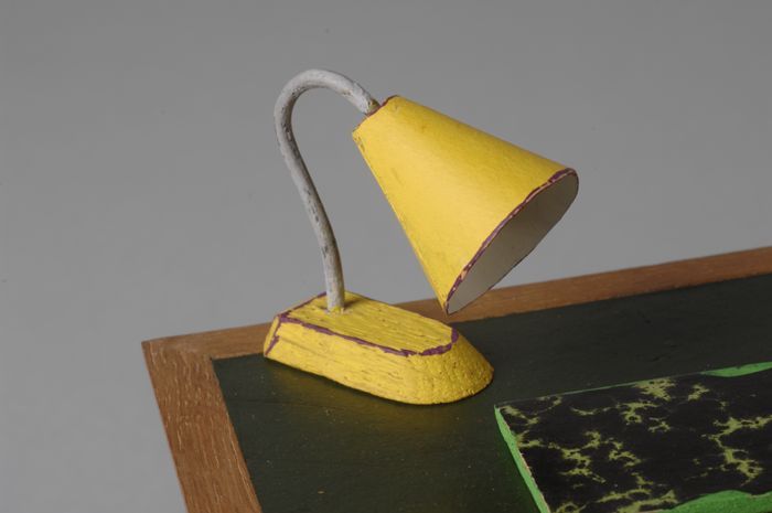 Miniatuur bureaulamp met gele voet en kap