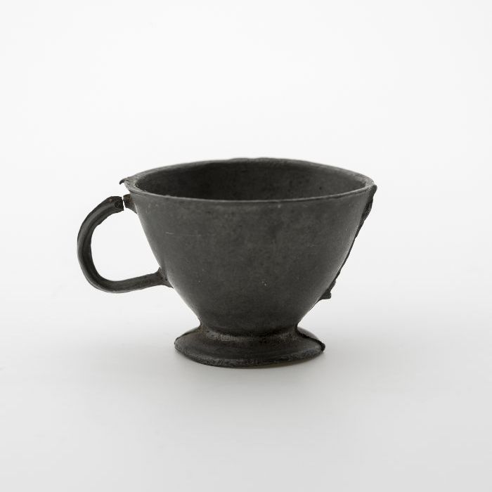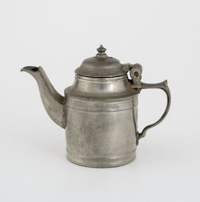 Miniatuur tinnen koffiekan met scharnierend deksel