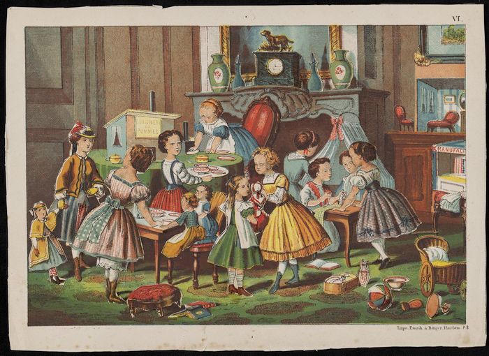 Plakplaat met voorstelling van speelkamer vol meisje...