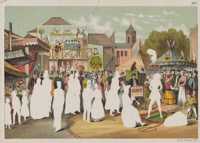 Plakplaat met voorstelling van kermis in een dorp me...