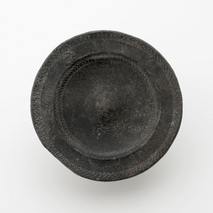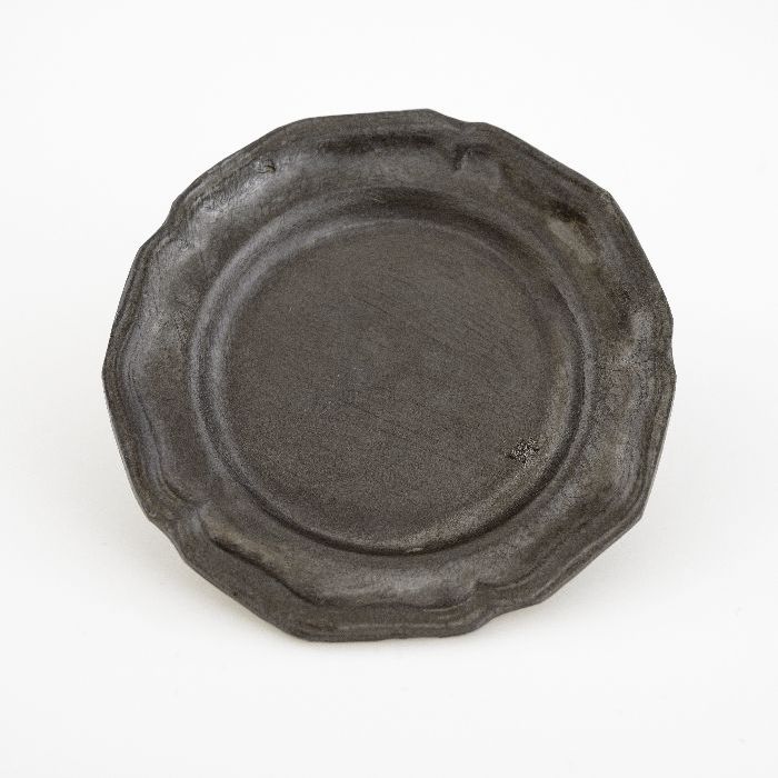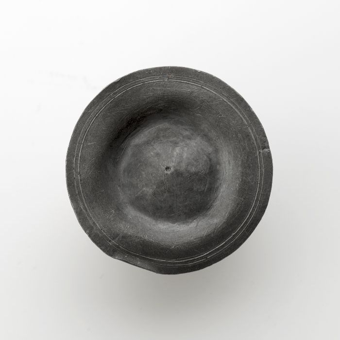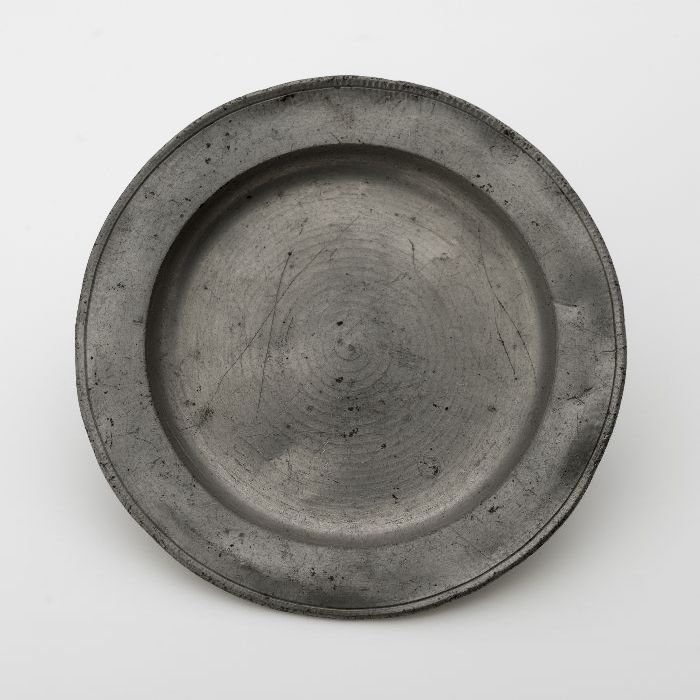 Rond plat tinnen bord met horizontale profielrand