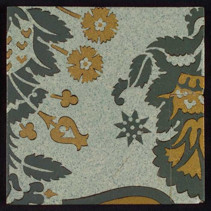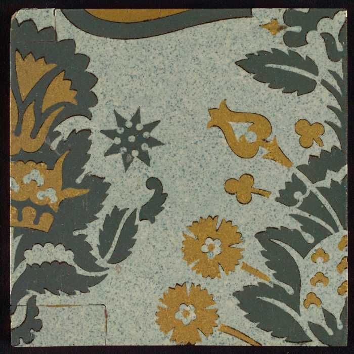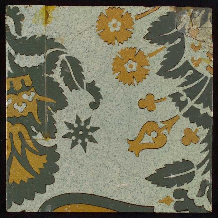 Tegel, wit, oker en grijs, bovenaan deel van spitse ...