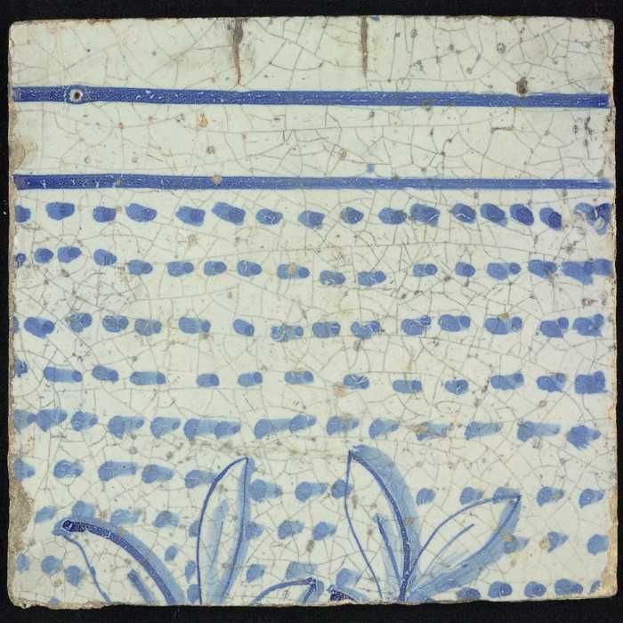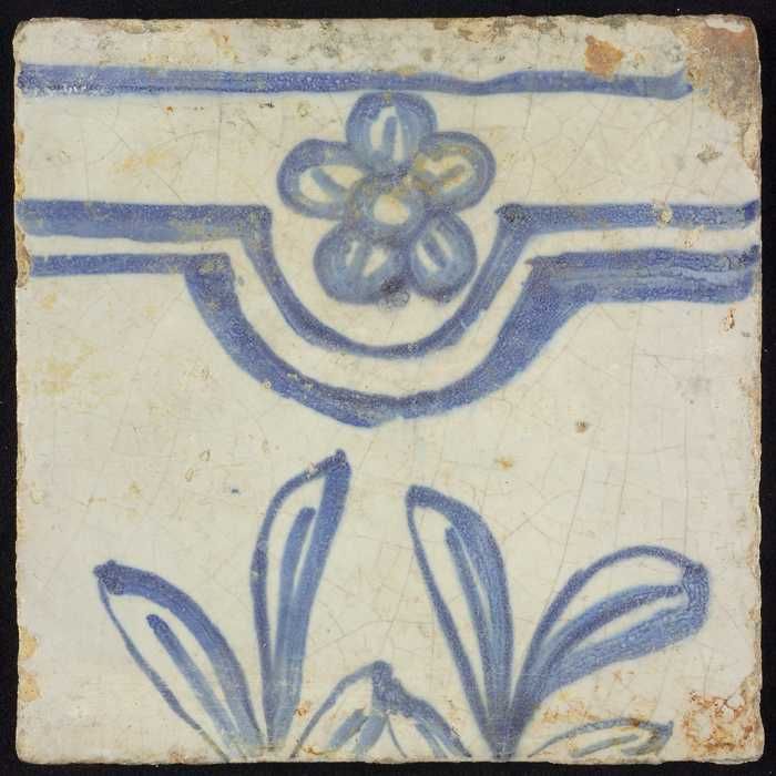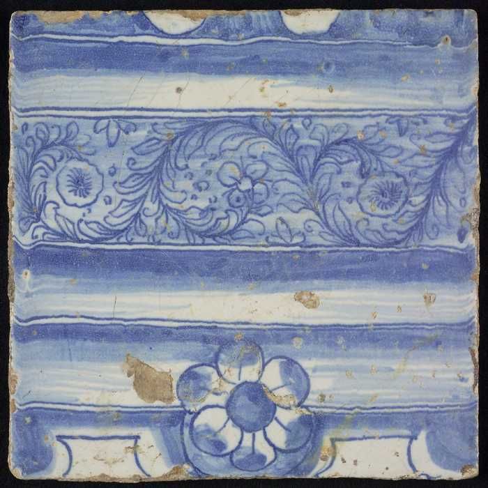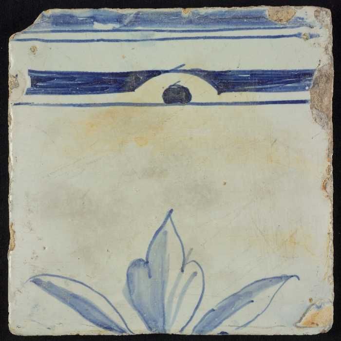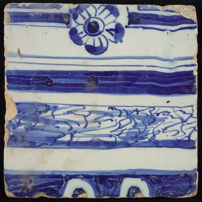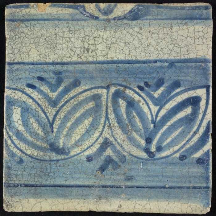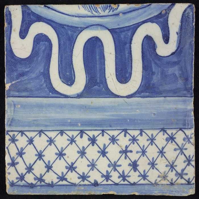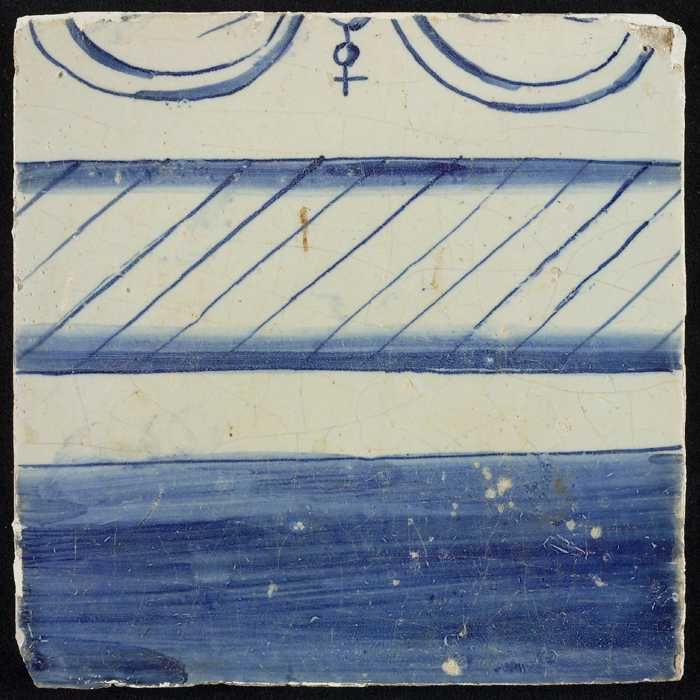 Tegel, blauw op wit, rand met gevuld deel en deel me...